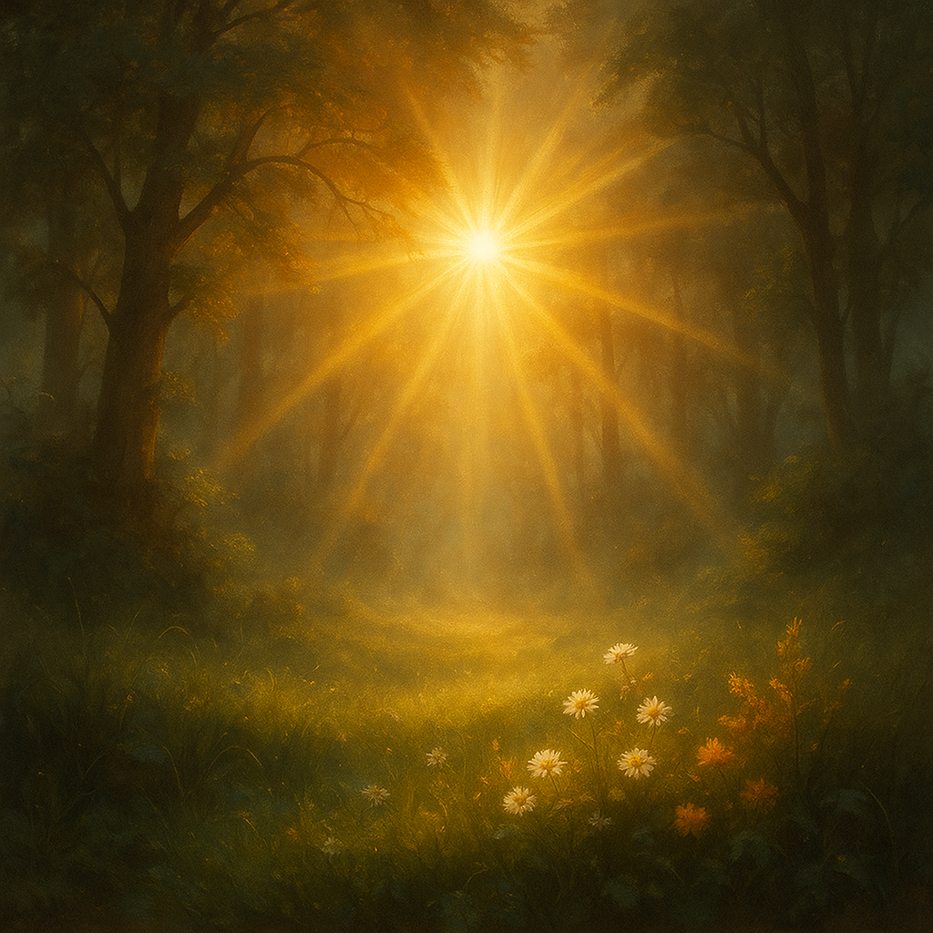 Trappings: Strahlende Lichtaura, goldene Hitzewellen, blendende Strahlen, heilende Wärme.