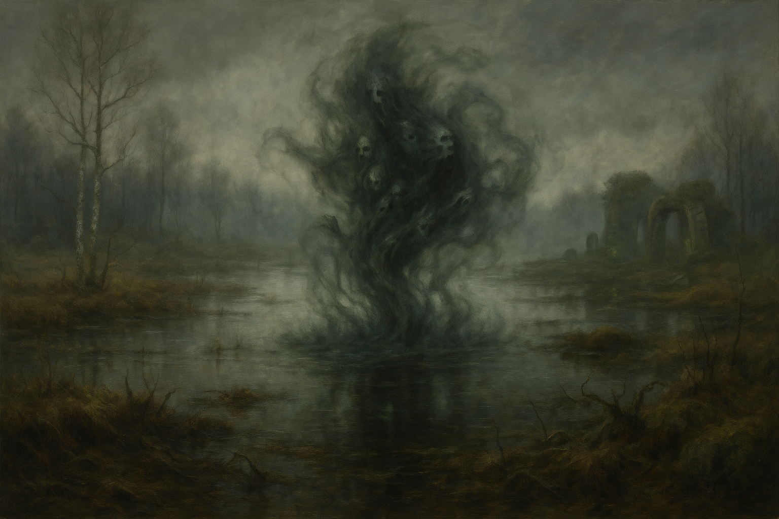 Ein Nebel kriecht über das Wasser. Kein Wind bewegt ihn, kein Laut begleitet ihn. Wo er sich senkt, welken Blätter, sterben Farben, und die Erde atmet schwächer. Dann bleibt nur Stille – schwer, feucht, endlos. Und in dieser Stille liegt etwas, das nicht mehr Teil der Welt ist.