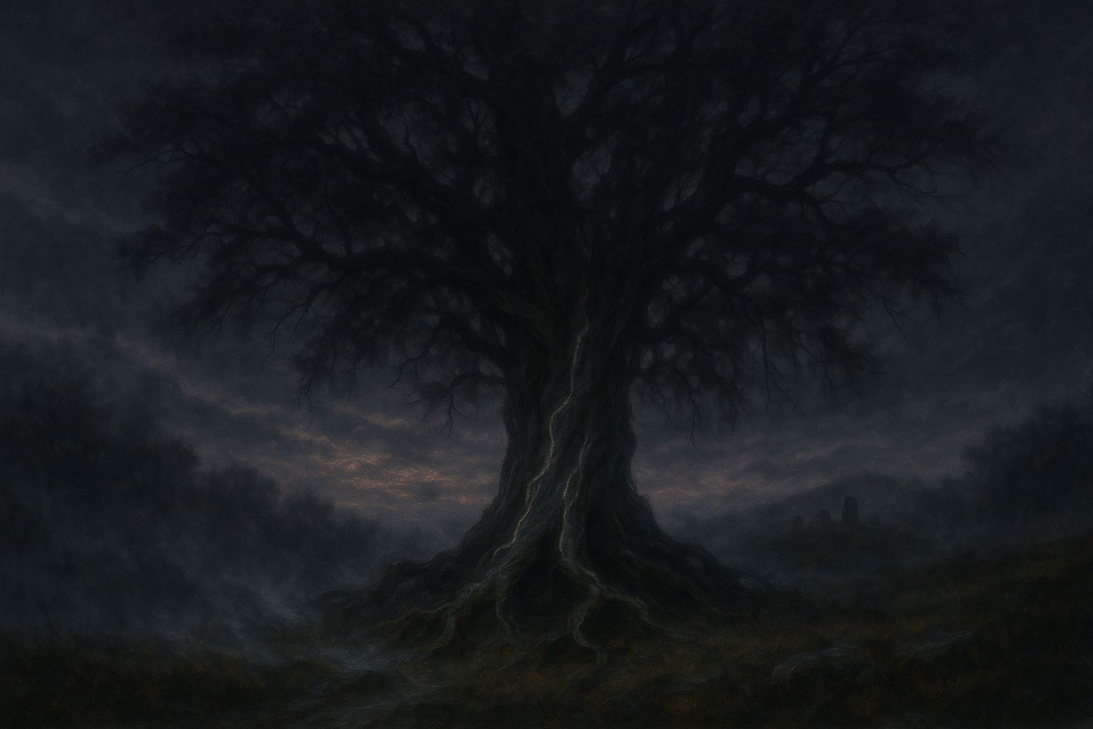 Diese Eiche gedeiht bevorzugt in verlassenen oder verwunschenen Regionen, wo die Natur bereits durch Magie beeinflusst wurde. Sie wächst oft an den Rändern vergessener Friedhöfe, alten Ritualstätten oder Schlachtfeldern, wo mächtige Energien einst freigesetzt wurden. Ihre Umgebung wirkt häufig still und unnatürlich leer – selbst der Wind scheint an solchen Orten zurückhaltender zu sein. Kein Tier wagt sich zu nah an sie heran, als ob ihre bloße Präsenz instinktive Warnungen auslöst. Es gibt Berichte über Regionen, in denen sich die Vegetation um sie herum verändert hat, als ob die gesamte Umgebung ihren Einfluss spüren würde.