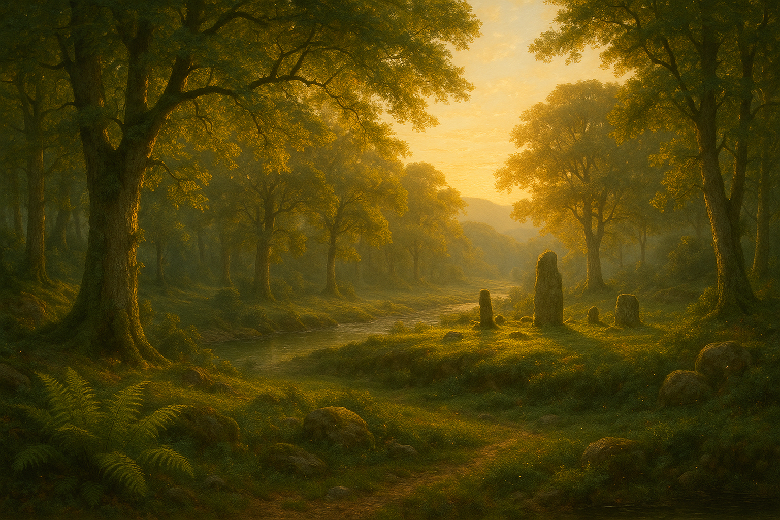 Das Inland von Frideyja ist milder, mit weiten Ebenen, dichten Wäldern und fruchtbaren Tälern, die das Herz der Insel bilden. Flüsse schlängeln sich durch die Landschaft, speisen die tiefen Seen und tragen Leben in die Dörfer, die entlang ihrer Ufer errichtet wurden. Besonders im Süden, wo die Landwirtschaft dominiert, wechseln sich weite Felder mit kleinen, naturverbundenen Siedlungen ab. Hier haben die Menschen gelernt, mit der Erde zu arbeiten, während die Wälder weiter nördlich noch immer ungezähmte Wildnis bewahren, in deren Schatten alte Pfade verborgen liegen.