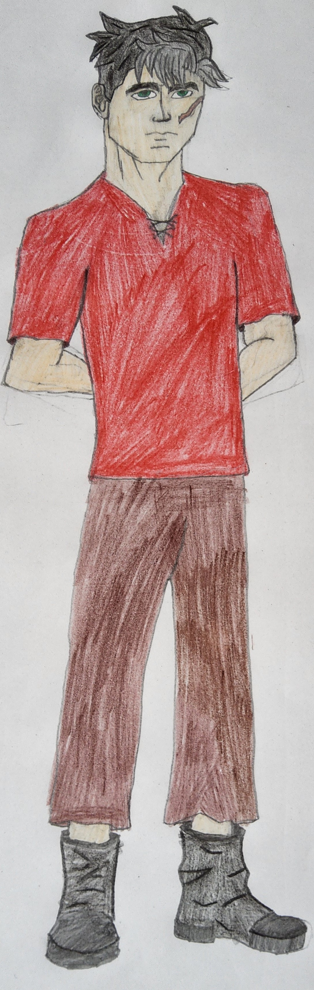 Jason often wears part of a traditional knight armor, a red tunic, brown leather pants and black leather boots.
