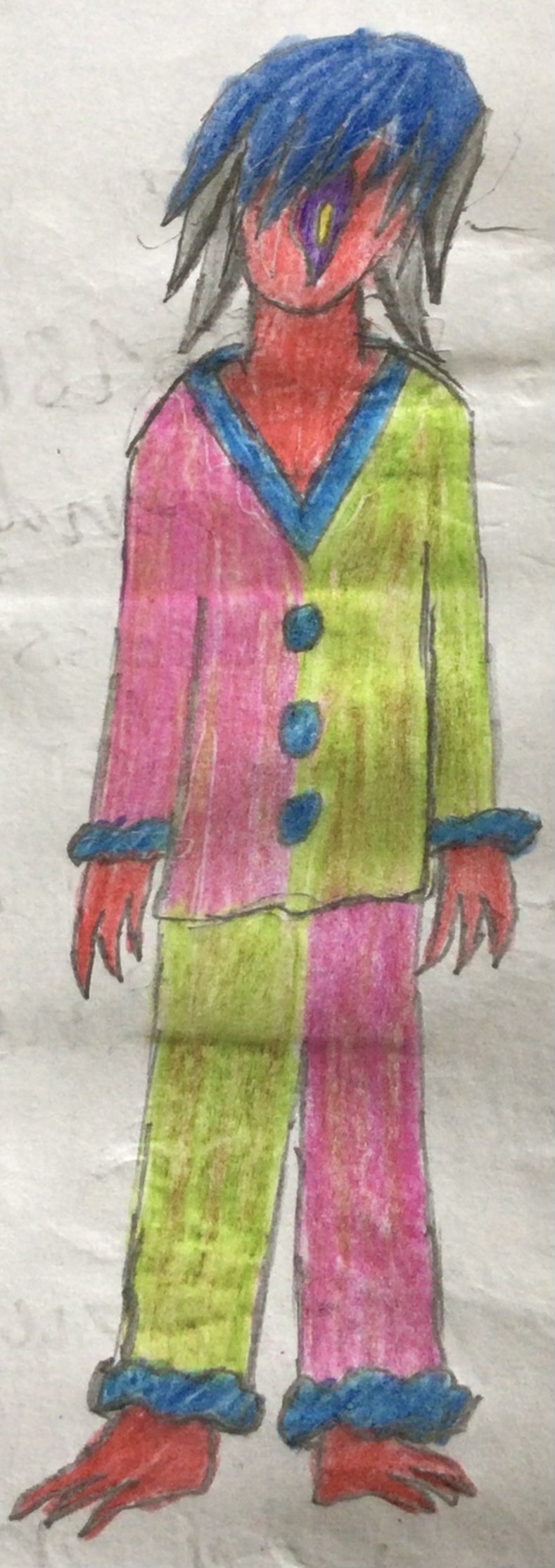 Tzarym arose during a particularly intense dream vision from Mikami. He is half made of magical substance, half of alchemically treated material fragments that were lying around in abundance in the circus. The colorful clothing is not on - it is part of his body. Each color represents a piece of a dream that Mikami cast into golem form.