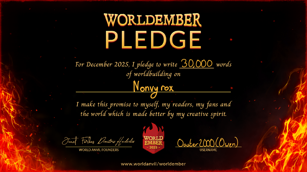 In November, the World Anvil team provide prep that allows for us to prepare for this glorious challenge of just writing words to create new worldbuilding. The following sections will dicuss my work towards both this prep and WorldEmber overall.