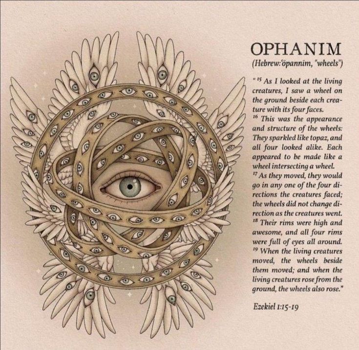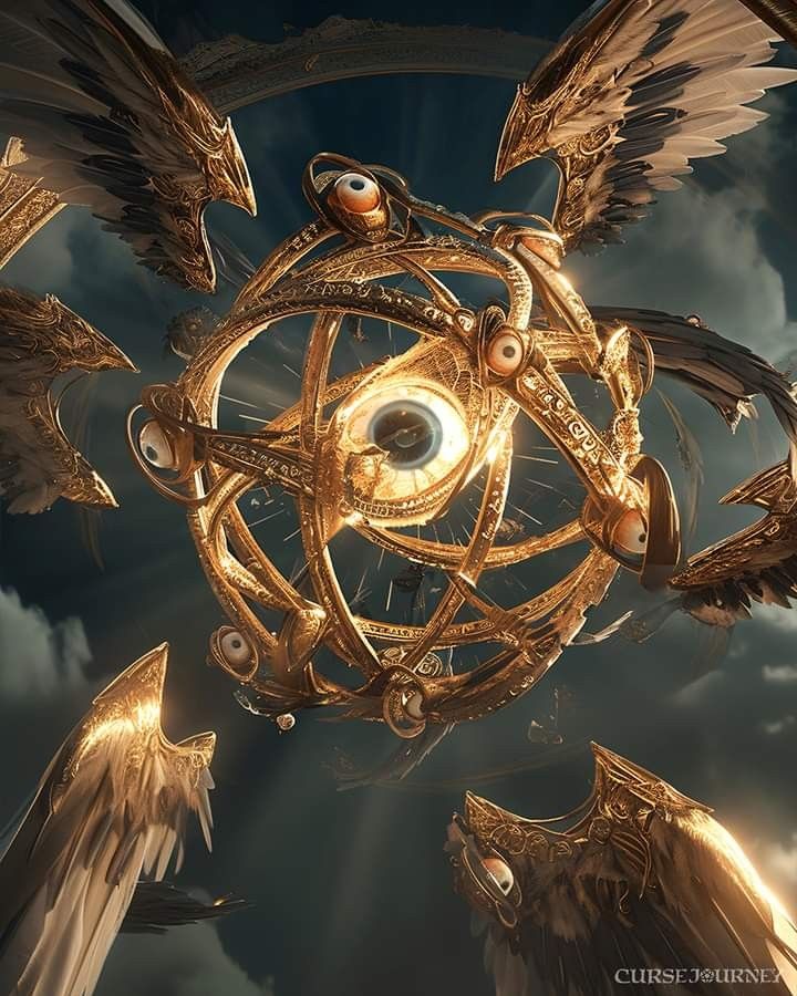 It takes the form of a small construct akin to the image of The King, a Large sacred eye with 7 wheels covered with eyes ever-spinning, and 6 wings, two upper, two middle and two lower, complementing the rings.