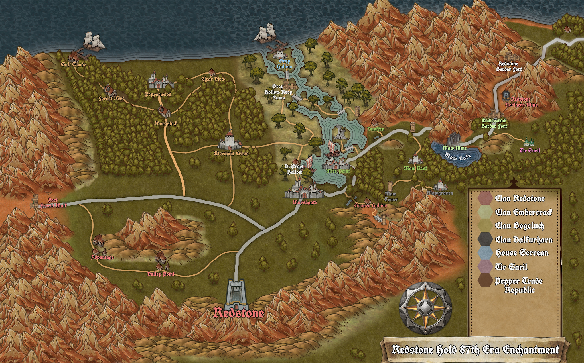 Redstone Hold is a autonomous region within The Vassaldom of House Serrean, The Serenity Barony, Kingdom of Alderia.