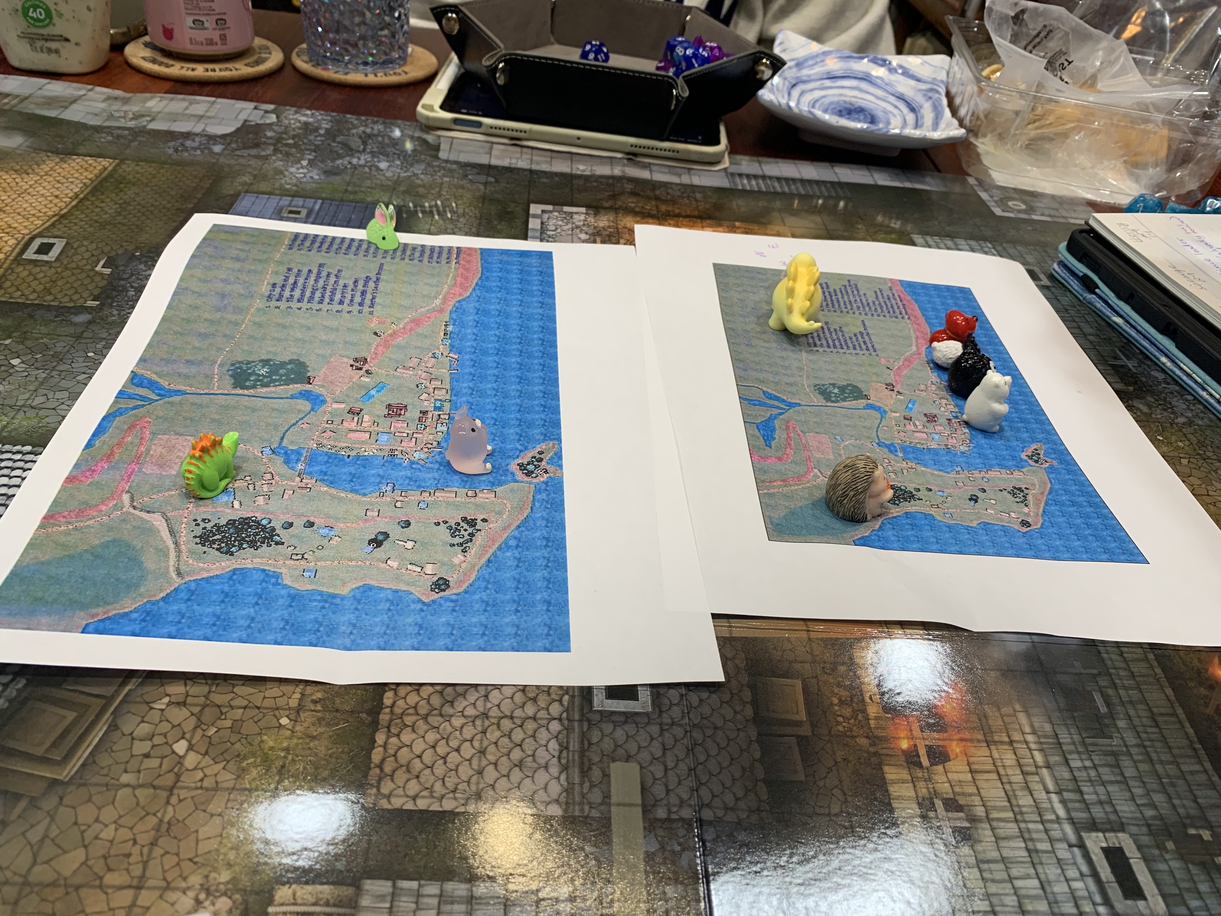 "Alright," responds Kyra, "I'll fly over the town while you all travel under the waves and, once I'm done with my recon, we'll meet up at.. hmm.. "
