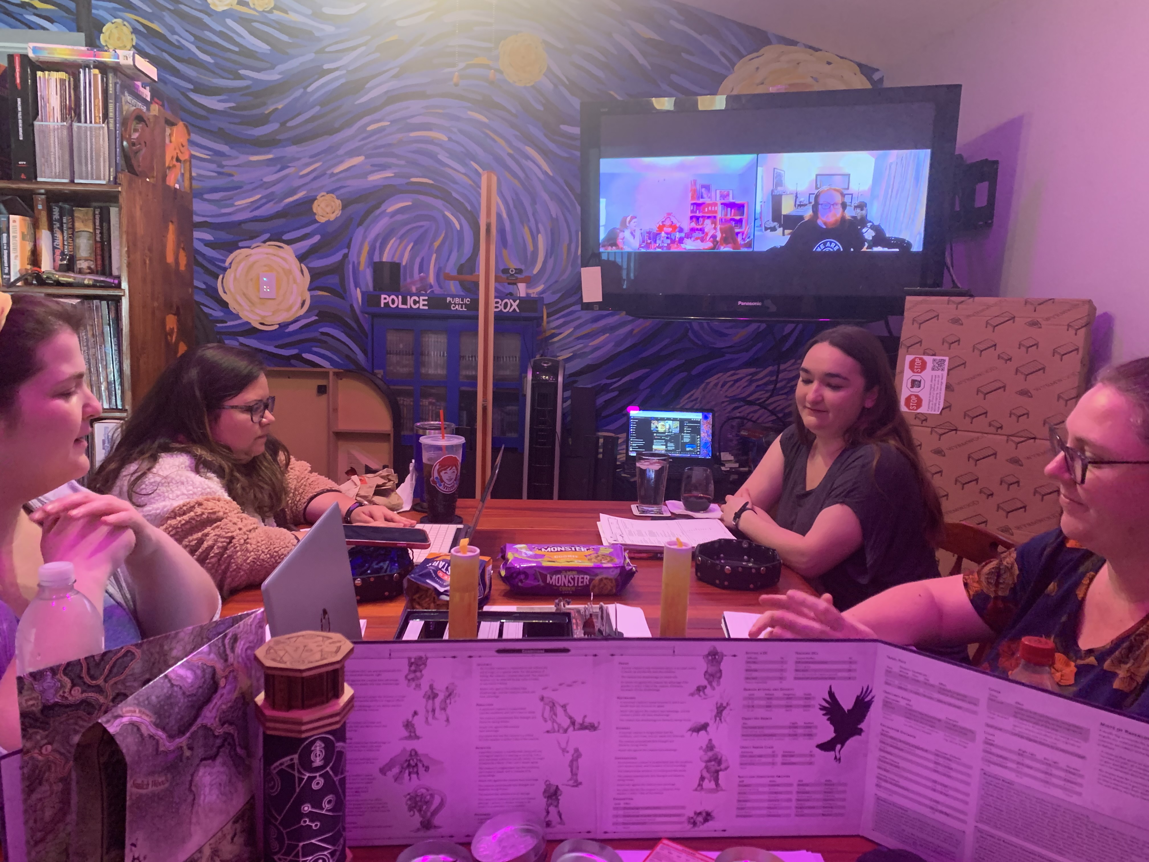 As Jagger and Fidelia saunter over to the bar to order a pitcher and chat with Lars and Bluto, they overhear Lars ask, "Danika, have there been any more reports of the purple lights from the Burgomaster's attic?" Before she can answer, the pair sit down and Jagger greets the other two, "Hey! How are you holding up after today's events?"