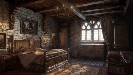 Rising the next morning, the party heads down to the tavern room and sees Danika behind the counter. As Danika greets the party, Urwin comes out of the kitchen with several plates of breakfast as he says, "Morning to you. To answer your bewildered expressions, we open for breakfast on Festival Days. The burgomaster is expecting you in front of St Andrals church by ten bells. I'd eat hearty as there's no telling when lunch will occur."