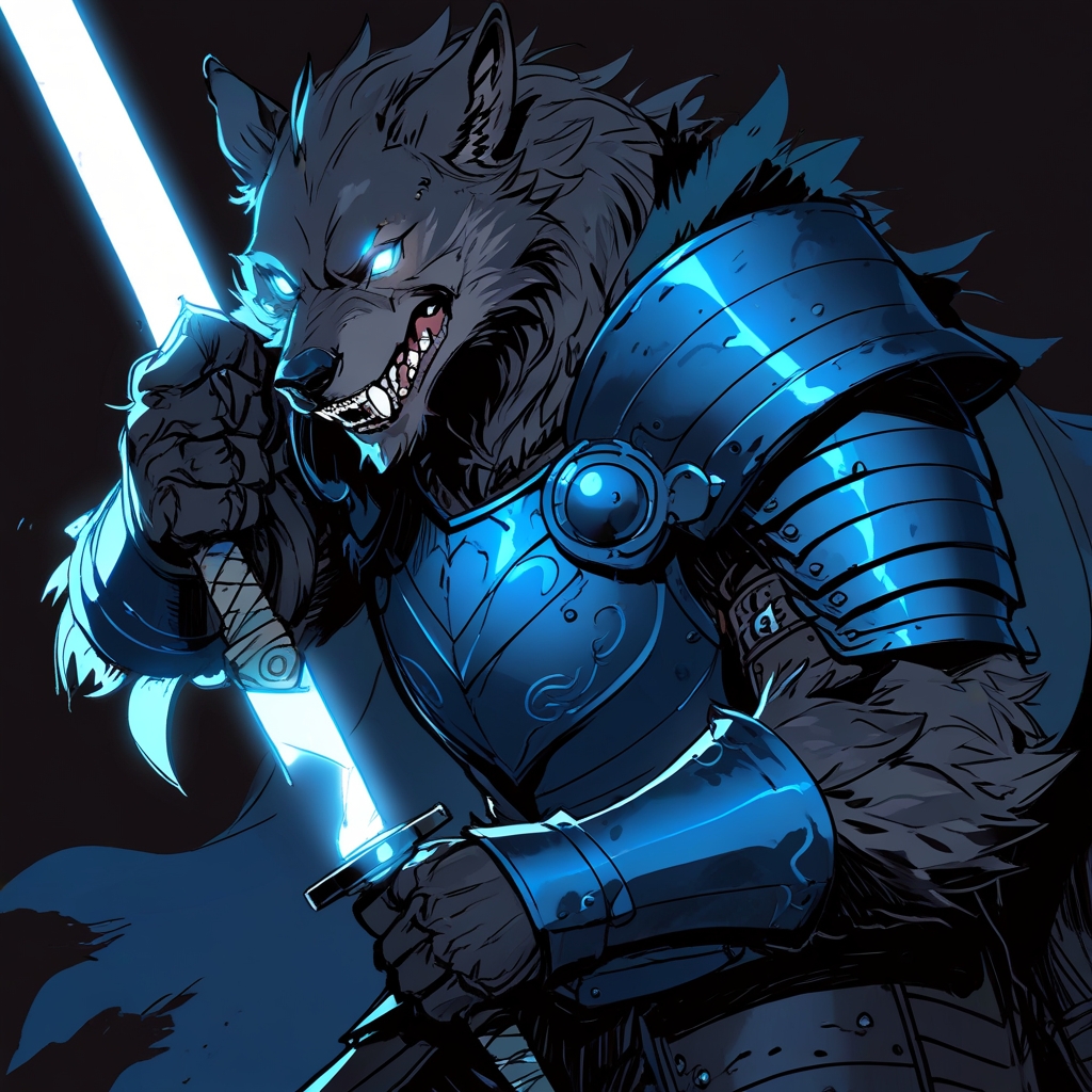 Aurora was born among ths sorcerers of Toletiva during a magentic storm that rained over the north, one brightened by an immense aurora borealis. This was deemed by the pagans to be an expression of wrath from Nonskis, and thus was in his honor named the child. Aurora would seiftly embrace the blessings of Nonskis, rising through the ranks of the Toletivan knights to the point of Grand Master, at which point his retinue of sorcerers brought forth a proposal. Aurora would accept this offer of theirs and under the circle of sanimancers, sangumancers and liberiomancers would have his limbs and body deformed and stretched into the mould of a shimmering blue suit of armour, recovered from the dungeons of the 17th that reside under the twin castles. In his life and leadership of the Lycan Knights, he had also allied himself with the Cult of the Warning Star, embracing the blessings of the abominations and thusly mostly stealing his soul back from Nonskis and handing it to an even crueler master. He is a cruel man, taking immense plessure from sadistic streaks of torture and brutality, often guided by the power of his blade that holds the spirit of a wyrm imbued within its bone core. This brutality was stopped at the wrong end of a chunk of moon sent down by Nonskis upon Leonardo, who had used his own being to cling to Aurora as a homing beacon for the stone, utterly reducing both to gore. In the words of the Son Forlorn, he will wander the Grey for an eternity over the sharpest stones.