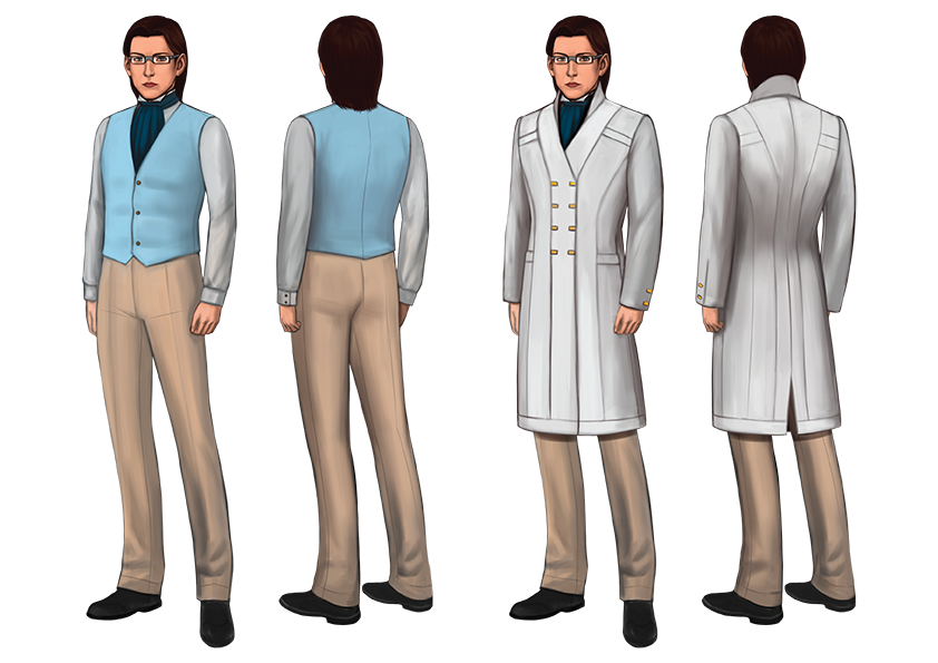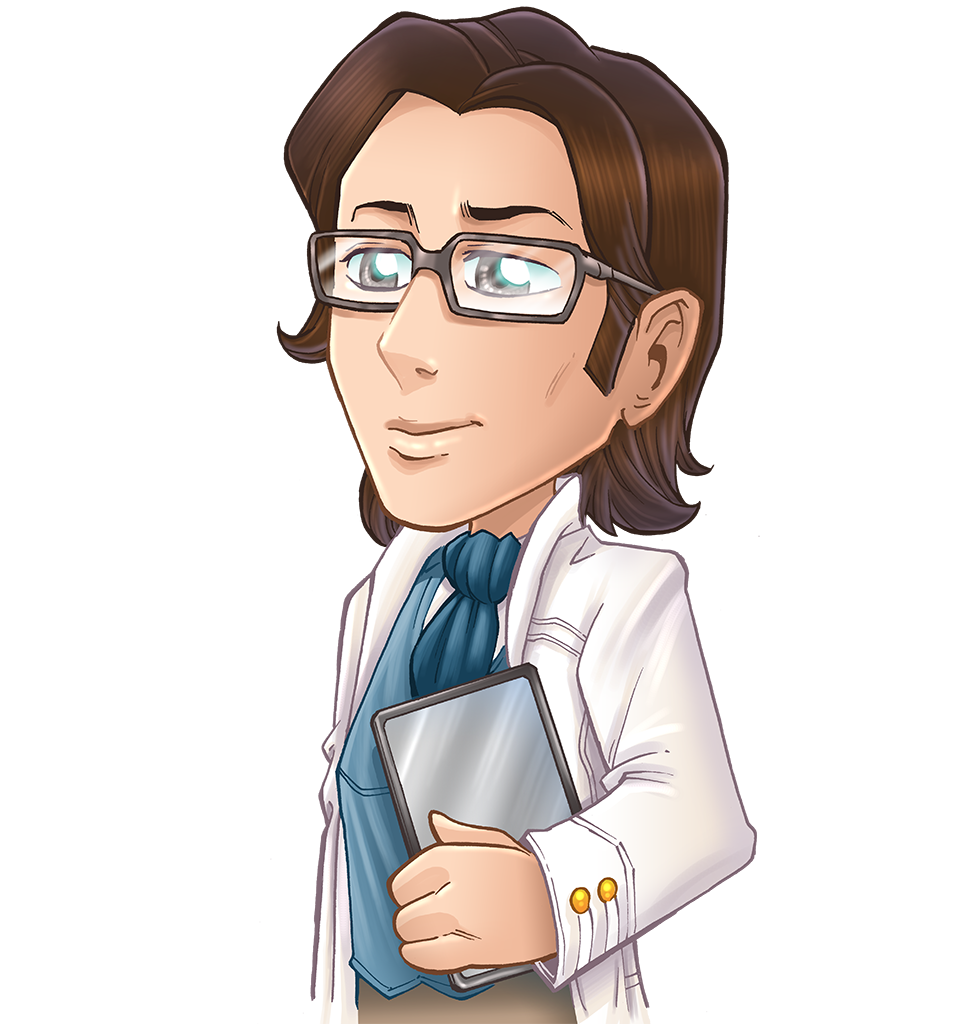 Comme la plupart des scientifiques, il porte des lunettes reliées à l’Analysium pour envoyer et recevoir des données pertinentes.