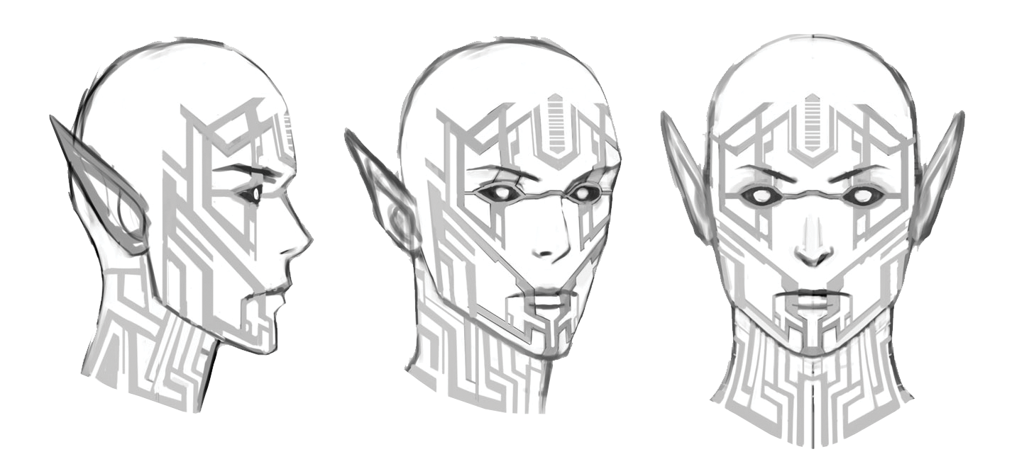 Sans son exosquelette, un Astrasien a une morphologie élancée, des traits fins et des oreilles pointues. Leurs cheveux sont clairs. Leur peau, très pâle, est parcourue de lignes épurées dont l’ensemble forme un motif aux allures de circuit imprimé stylisé et symétrique. Chaque tatouage est luminescent. Leurs yeux sont noirs et leurs iris dorés. Leur technologie est très différente de celle extrapolée par les Olydriens. Elle est organique et minérale.