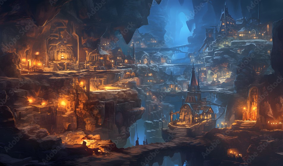 This ancient city was born during the War of Sin. as an outpost to want in now called the Desolation. An underground city built by dwarves and orcs. Over the millinia is has grown and waned even to the point of complete abondonment. In the last century it has grown again with the oversight of the capitol of Emberwood.