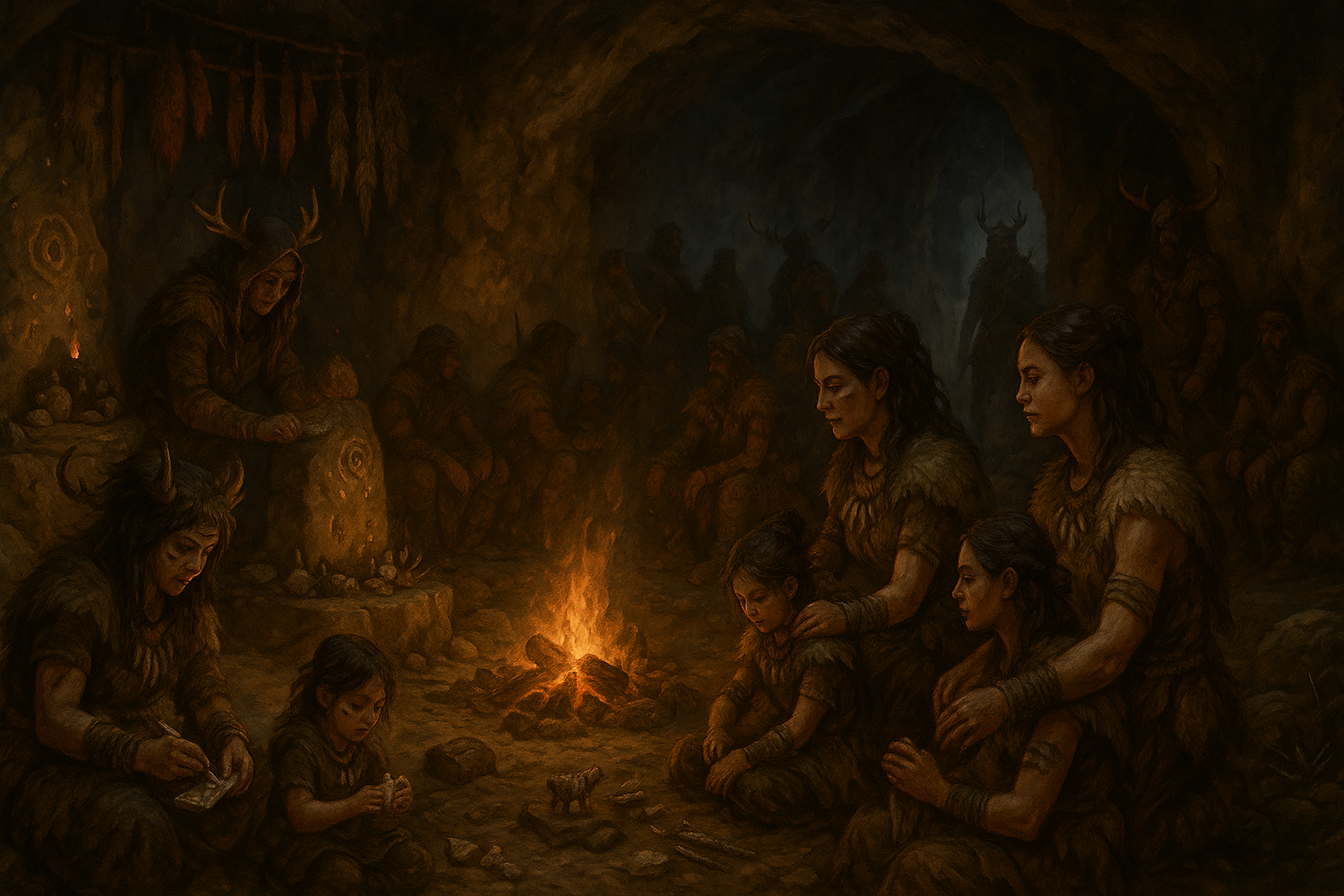 Both genders are expected to fight when the clan is threatened. Women are revered as voices of the ancestors, believed to carry their strength and memory more strongly than men, leading to them being largely represented among shamans and the magic practicing druids of the wildmen. Men are measured in hunting and raiding prowess, storm-song, and their ability to protect kin.