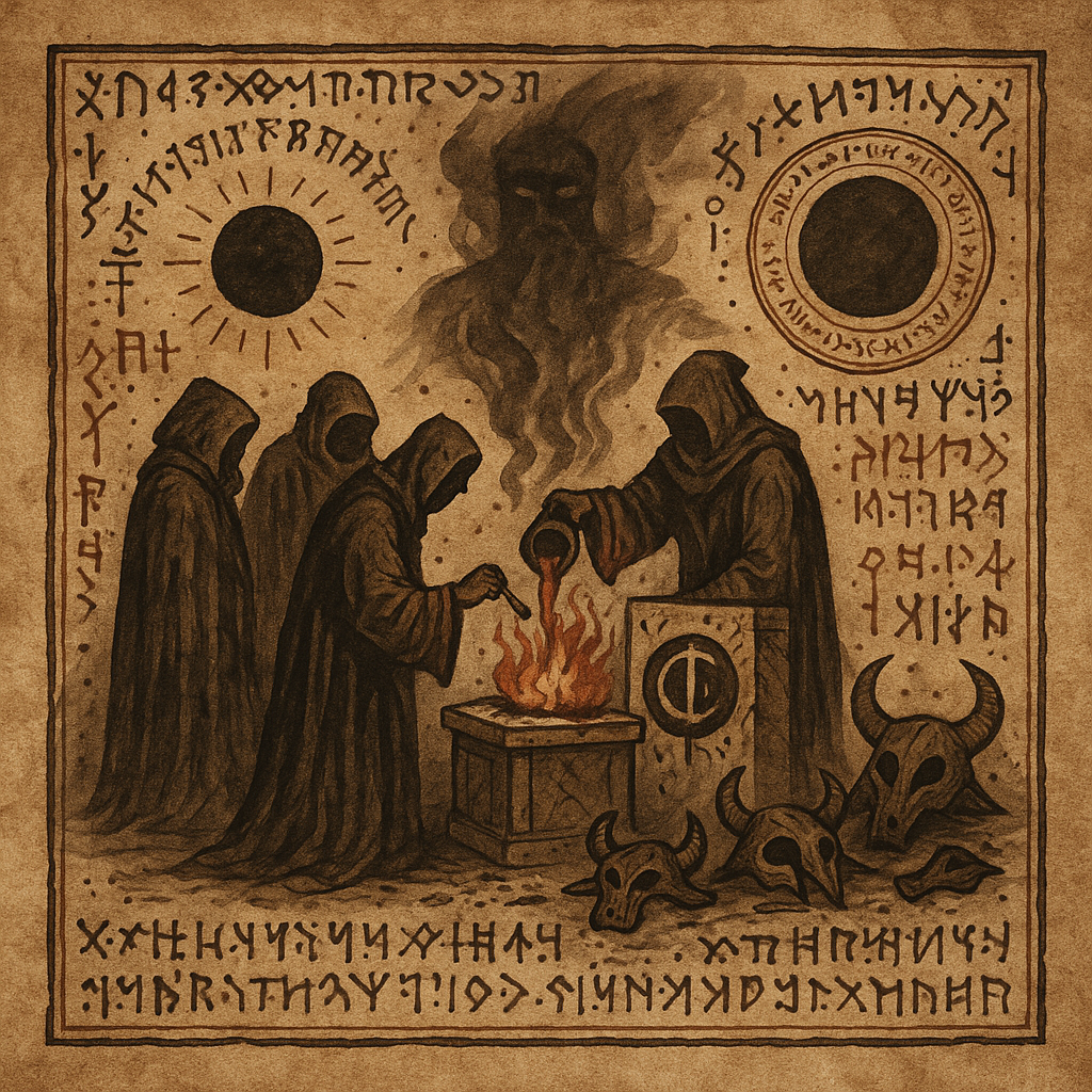 With Harlak's divine voice having fallen silent, his disciples burrowed into the earth. In caverns, crypts and blackened ruins, they preserved his rites. T Oral liturgies, forbidden sigils, and eclipse-marked relics were passed hand to hand, disguised as funerary rites or ancestor veneration. Some scholars believe the first Beastmen tribes were themselves corrupted remnants of Harlak’s armies, bound by these same rituals.