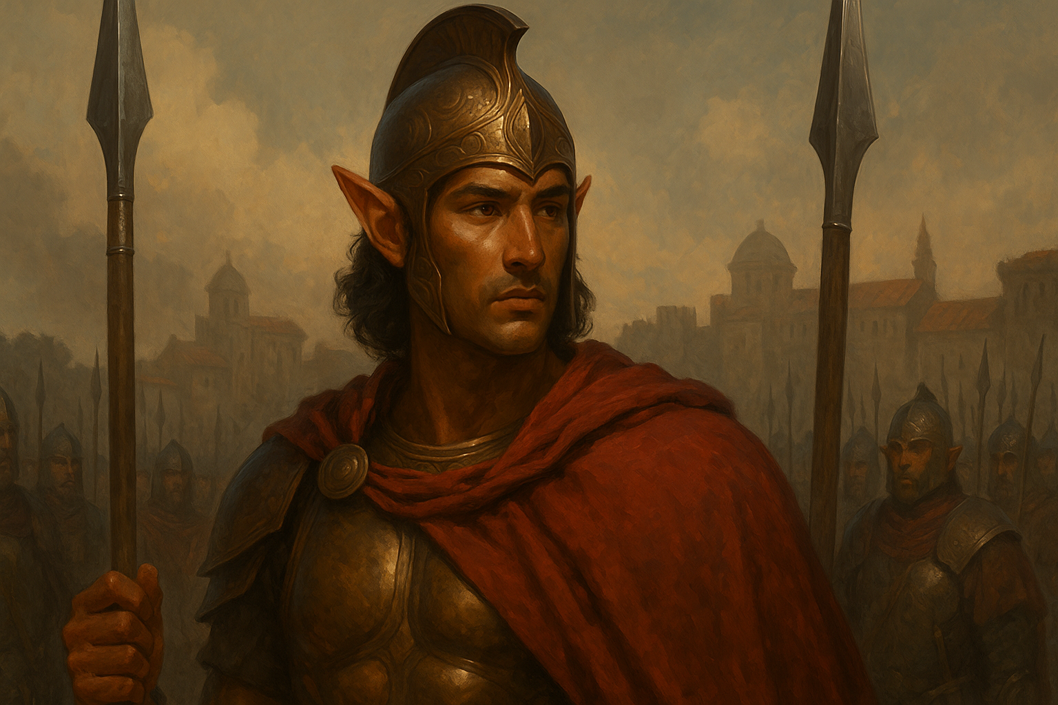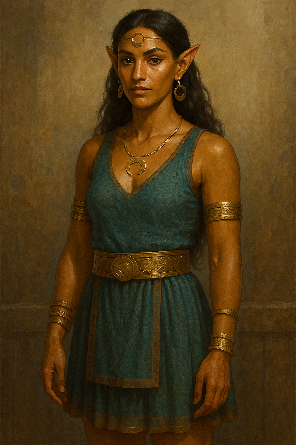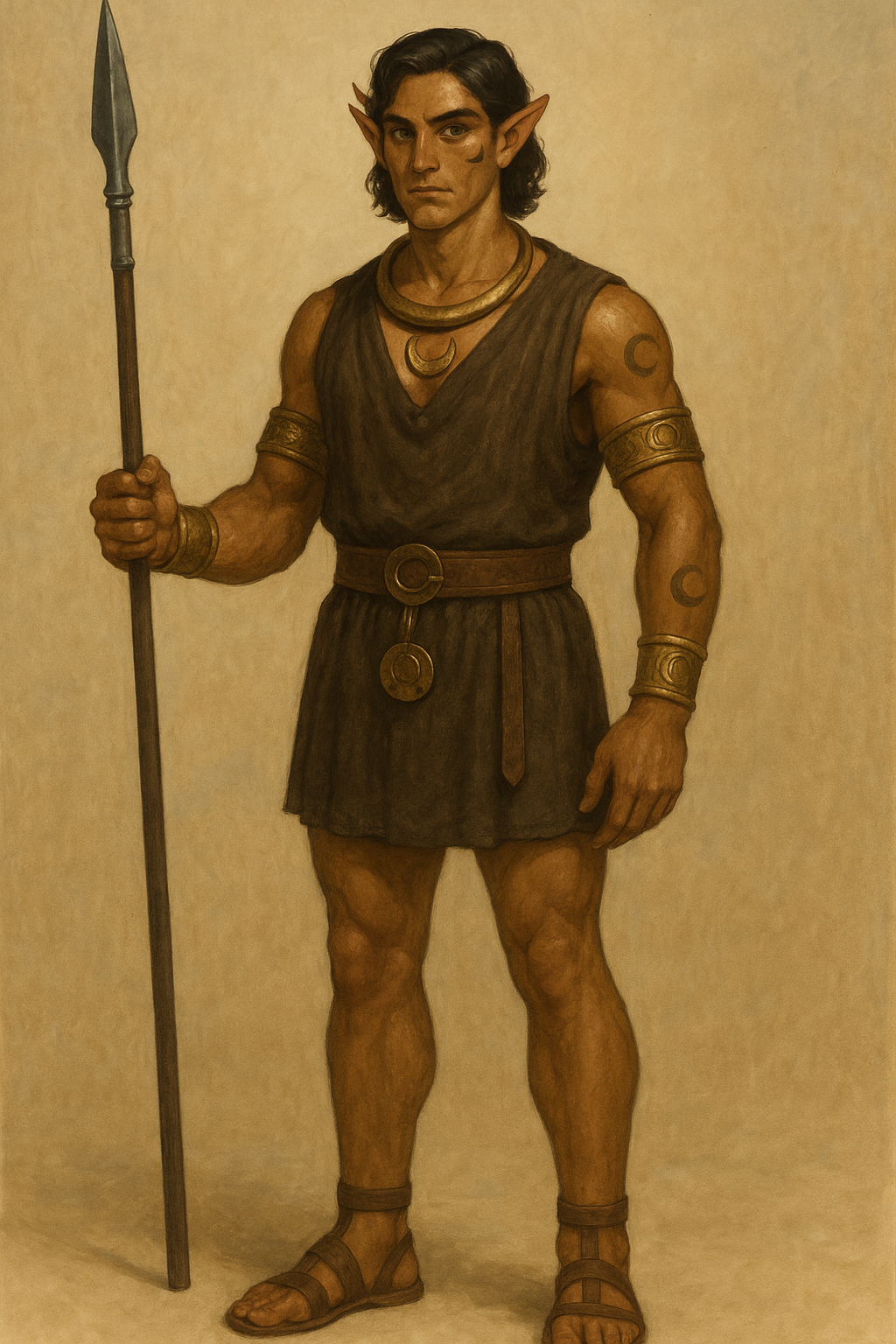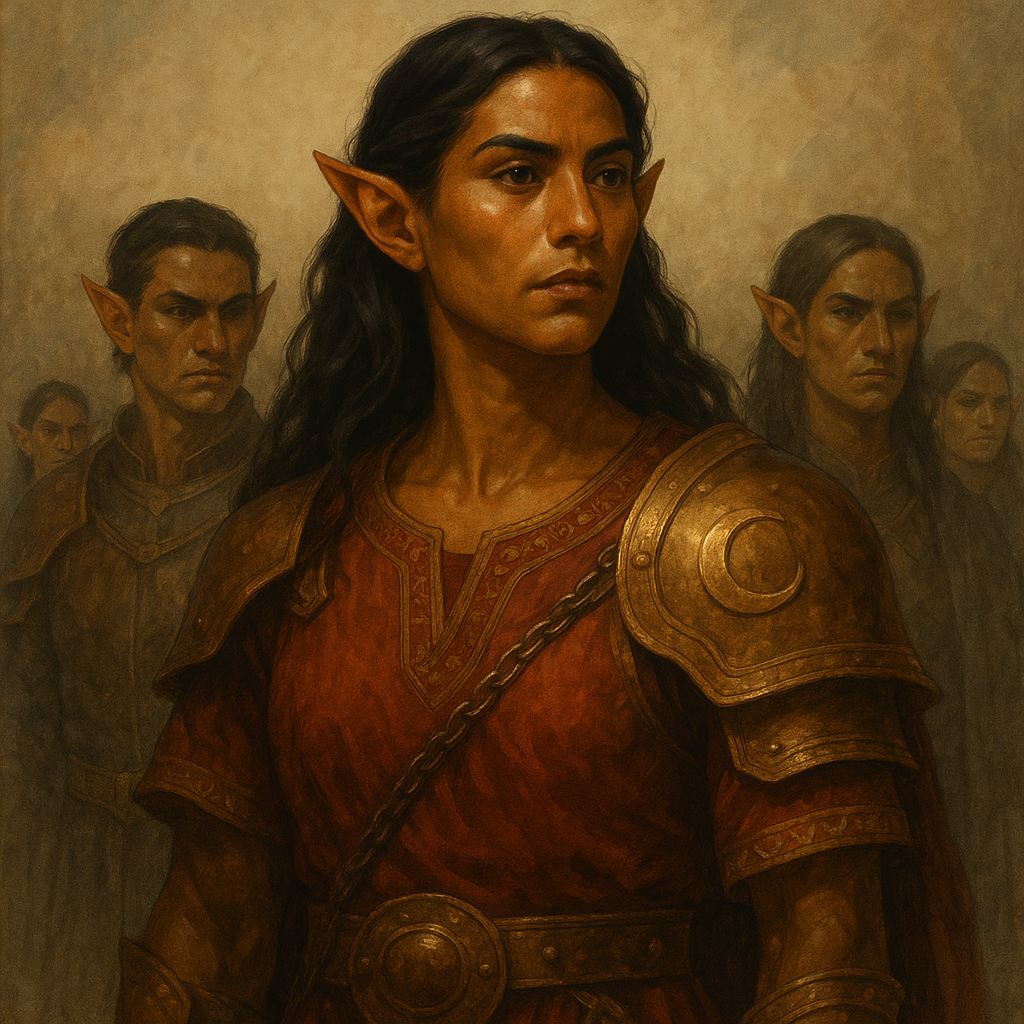 Thalori skin tones ranged from warm olive to deep copper, a tone that further lent them their enduring moniker. Dark hair, most often brown or black, though streaks of auburn were not unknown, framed angular faces and sharp features, while eyes of green, amber, or steel-grey shone with intensity. Sturdier and broader in build than the tall, slender Lorinthans, the Thalori carried themselves with a martial presence.Naming Traditions