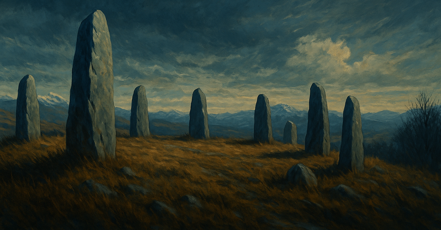It is said on cold nights, the dead hold council within the ring. Runes unseen by day awaken with a faint glow, tracing themselves upon the stones in pale light. Wanderers and bards have spread tales of pale figures crouched around its heart, whispering in a tongue known by no living creature. The Ring is feared by the cautious, but not by all. Adventurous youth and folk heroes often make pilgrimage to the Ring, spending the night within the circle. They oft return speaking of visions of stories long forgotten and carrying new ballads none have heard. Others claim to have seen gatherings of strangers within the circle on moonlit nights. Elves most often, but others less easily named. Whether a relic of the Gods, the Elves or something else, the Ring of the Sky Stones endures. It is a place of oath and of dread, where the living remember their ancestors and the dead may yet linger in council.