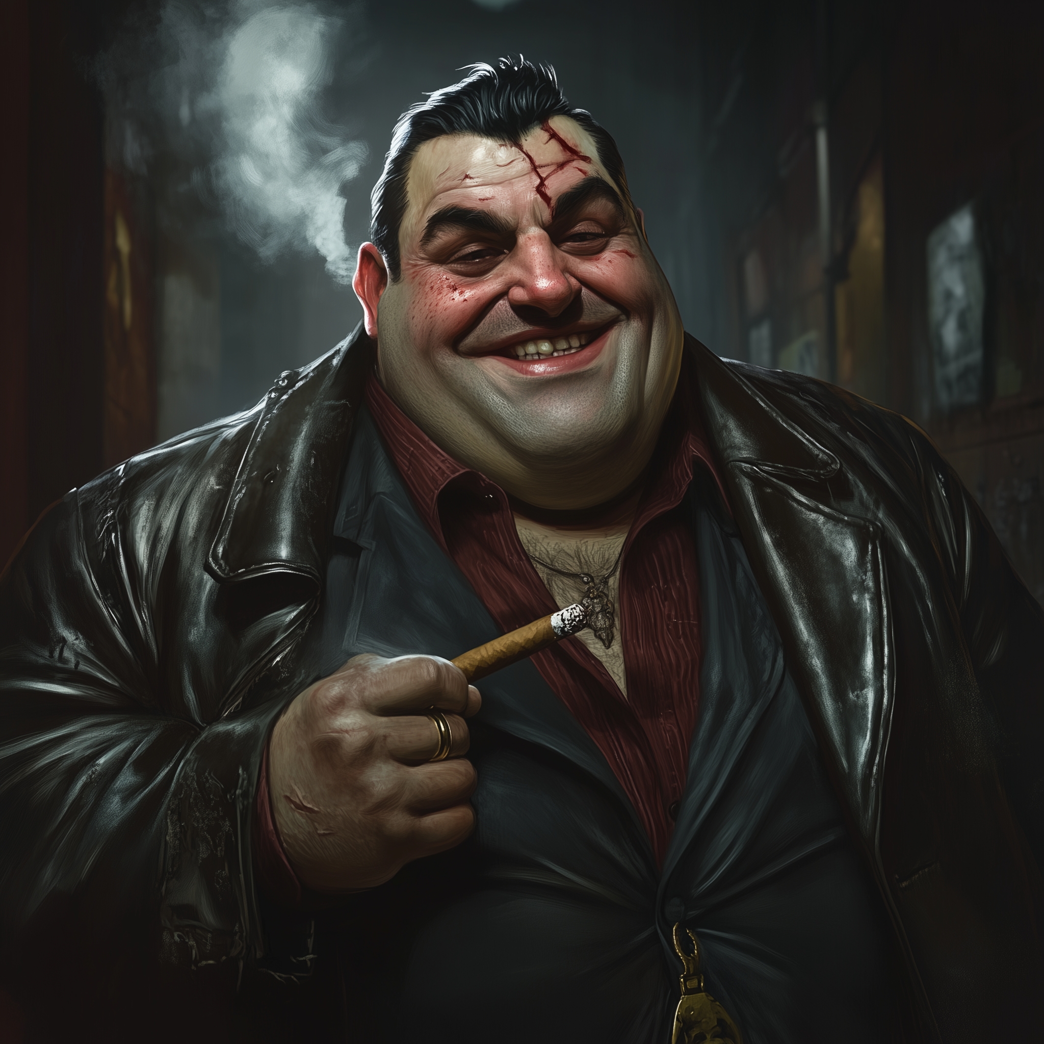 Sangvini er Rødjakkenes leder. Hans hovedbolig er Bossmann Huset, men han holder også ofte til i Nak Tetro. Sangvini er en tykk mann, med håret dratt bakover i en stram sleik, og med en lang skinnfrakk. Han har et stygt arr på tvers av ansiktet, som får det til å se litt vridd ut når han smiler. Og han smiler og ler ofte. Men han er ikke en snill mann. Han er ekspert på å få mennesker rundt seg til å føle seg sett, hørt og respektert, før han dolker dem i ryggen. Han er fryktet, og er kjent som en brutal og dyktig gangster.
