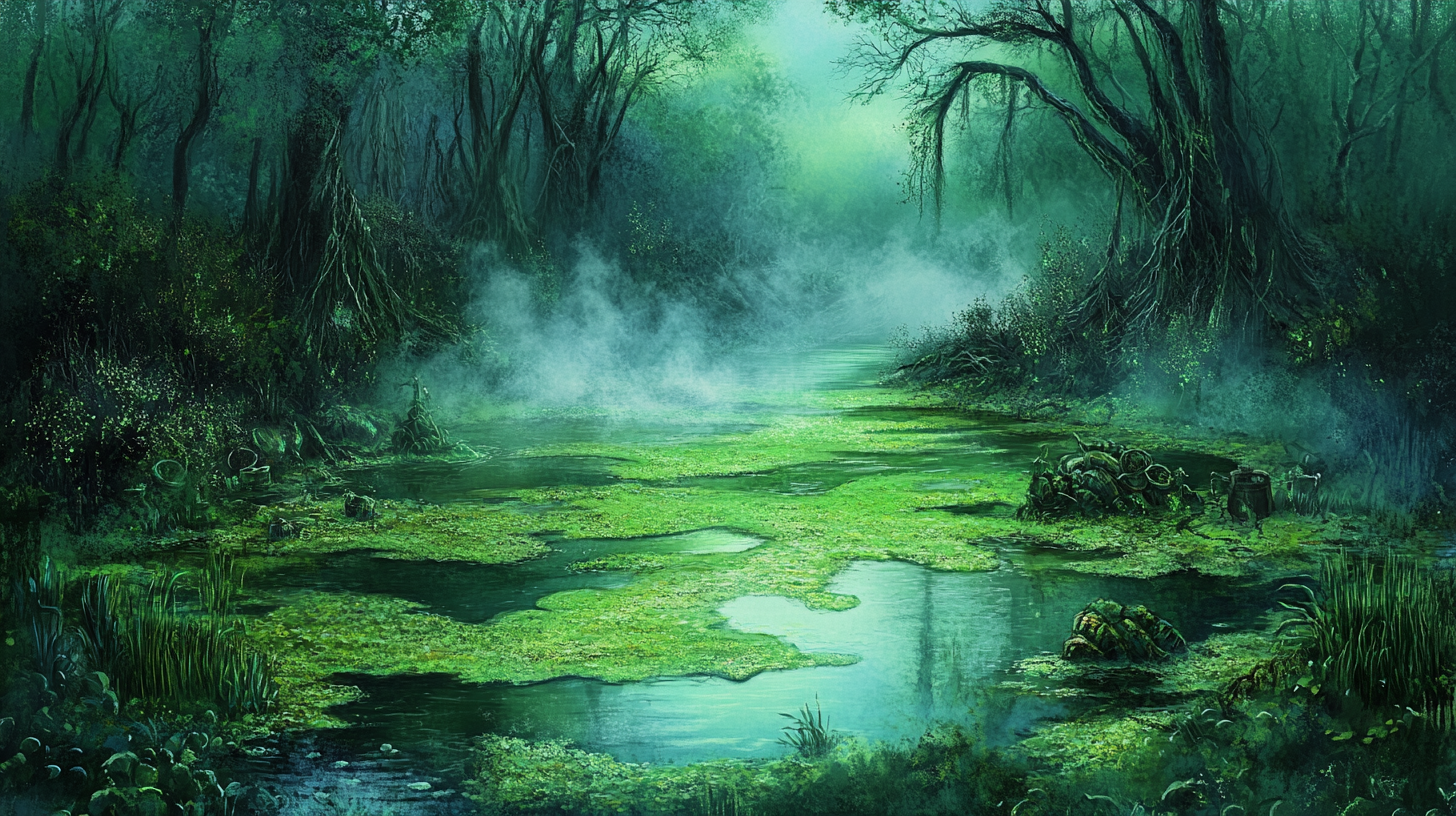 The Mire earned its name from the clouds of toxic swamp gas that permeated the air above its murky waters. The foul clouds and the dark pools of water were the direct result of the alchemical experimentation of the Fomorian Covenant of witches.