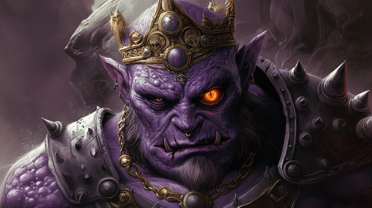 Malabog's rise to power marks him as an exceptional figure among the Fomorians. Unlike most of his kind, he demonstrated remarkable ambition by establishing his court in a conquered fey castle, a symbolic act that challenged the curse placed upon his race. His ability to build and maintain a complex power structure shows leadership qualities rarely seen among Fomorians, and his influence now extends across the Feydark realms.