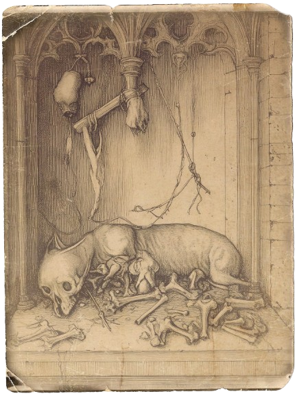 - Terrierist Shrine: A shrine with a sculpture of dog out of bones. Bowl in front of it that had blood in it. Skins and carcases of small animals as offerings.