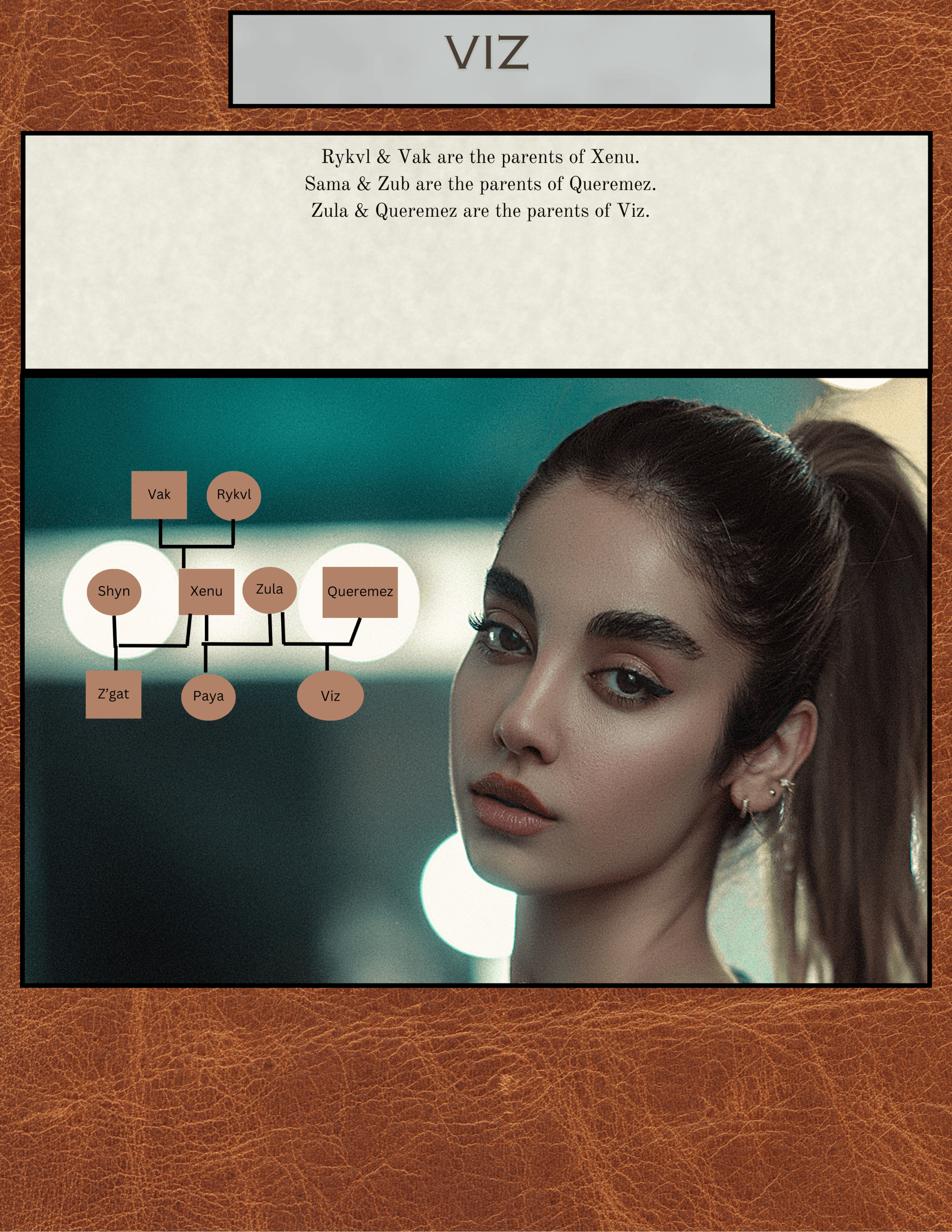 Zula has a daughter with Queremez whose name is Viz, she has a sister whose name is Paya