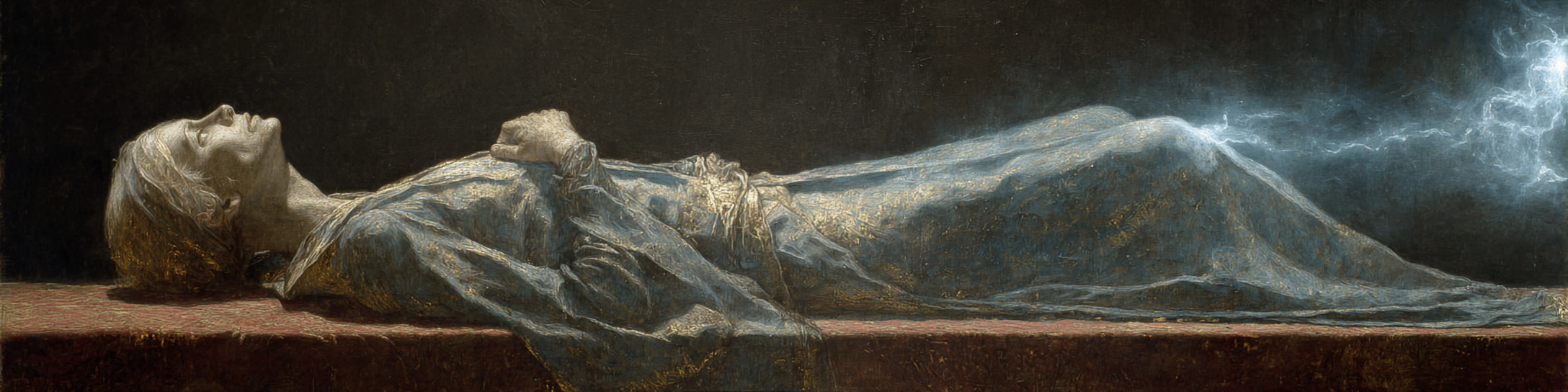 Im Augenblick des Todes löst sich die Seele vom Körper des Verstorbenen. Je nach den Umständen des Sterbens kann dies ein friedlicher Übergang oder ein gewaltsamer Akt sein, aber immer ist es ein Schock für die Seele. Getrennt vom Leib, orientierungslos und verängstigt wie ein Neugeborenes hat die Seele nur den Wunsch zurück in den Körper zu gelangen. Unter normalen Umständen ist dies der Seele verwehrt. Doch unter besonderen Umständen kann eine starke Seele sich nach dem Absterben des Leibes den Weg zurück erkämpfen. Dank sei den heiligen Zwillingen, daß diese Umstände nur höchst selten eintreten, denn eine Seele in einem toten Körper ist ein grauenhafte Monstrosität, eine pervertierte, höchst gefährliche Verhöhnung alles Heiligen und des Lebens selbst. Hierin findet sich auch der wahre Grund für die uralte Sitte der Totenwacht und das Gebot der schnellen Einäscherung der sterblichen Hülle.
