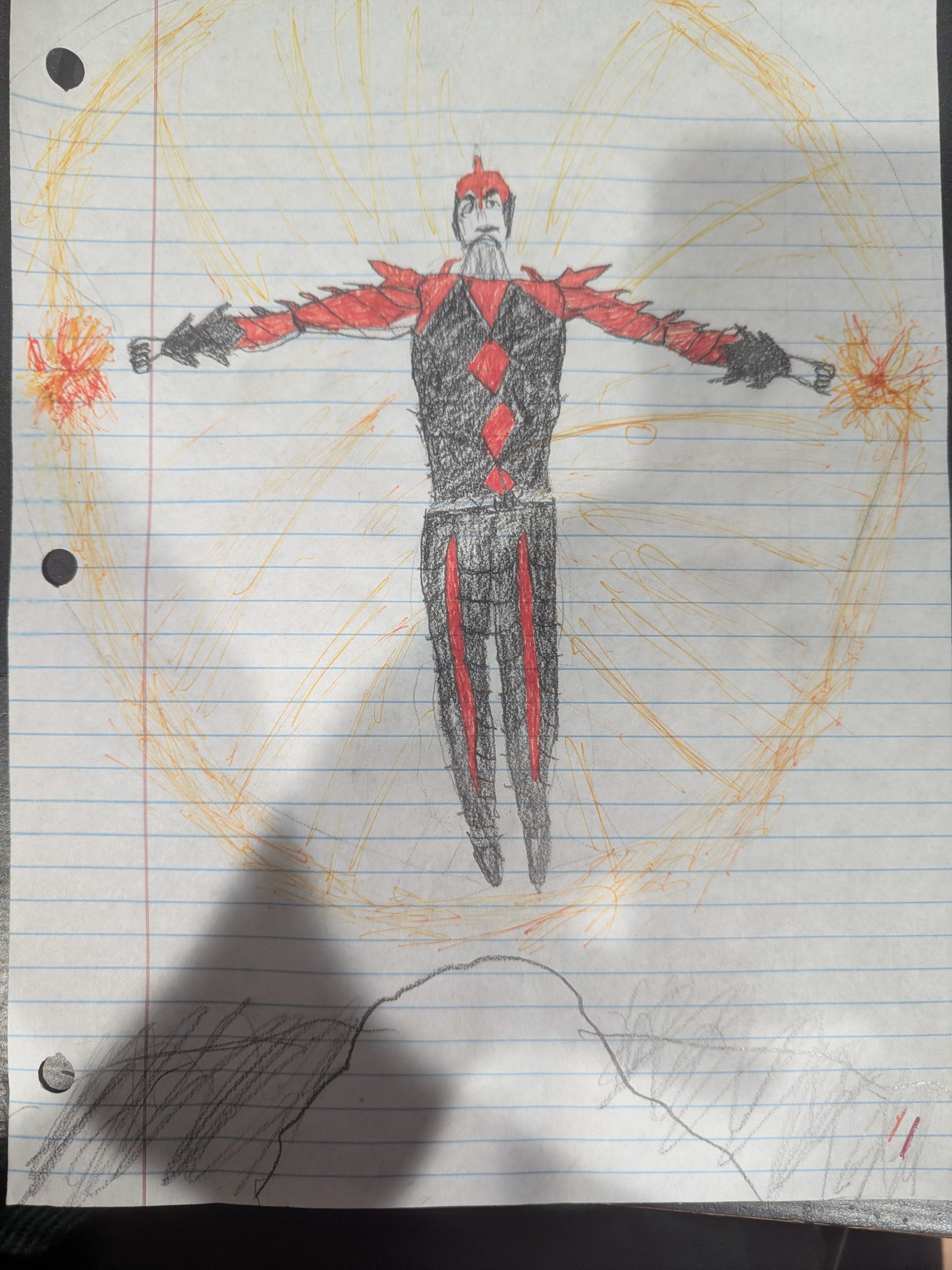 This was art made by me probably around the age of 11 or 12, trying to depict an early version of Maverick. I used it as one of my main seeds for the seed abstraction projects. What it lacks in artistic skill it makes up for, for me, in depth of memory and inspiration that has been boiling away for over a decade in my creative center.