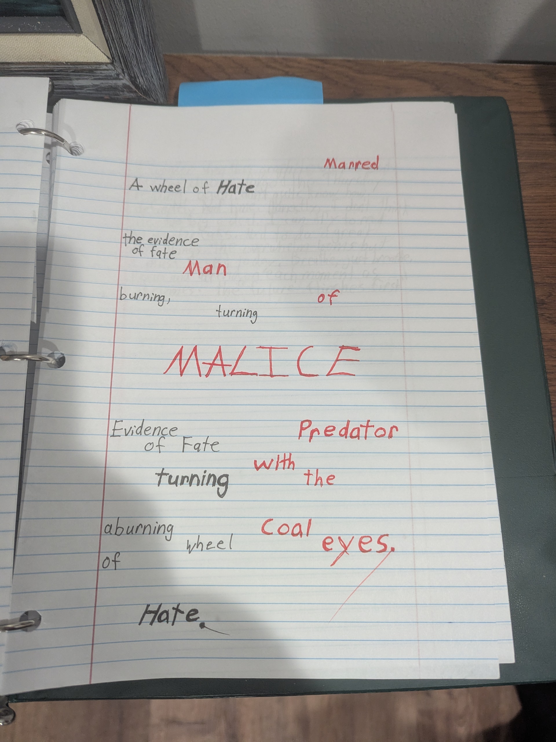 The feedback I have received has been very useful for this project. Initially I got some feedback from my Maker's circle, when I had a very big, wide ranging idea that was overcomplicated. They informed me of this and I worked to pair down my idea into something more workable. The feedback from presentation day at class was also very useful and was such a big encouragement. I smiled all of Thursday because of the kind words they shared about the snippet they got. I have not yet heard back from my mentor, Alyson Hagy, but I will this coming Monday. I am somewhat nervous to hear what she will say but I did send her some specific areas of feedback that I am looking for. Similar to what I requested in class, I requested feedback on whether or not the story is comprehensible, her first impressions of the characters, settings, and flow/pacing of the story. I also allowed room for whatever other feedback she had. I also have shared the draft with my friend Caleb, as I mentioned, and he often will ask thought provoking questions that help me think about where the plot is going. Our discussions are usually nuanced and related to several other projects, as we have been helping eachother with our creative pursuits for quite some time. Not much iteration has happened so far, because I am still on the first draft. I did start the third section "Tidefall" and then restart it, but I retained the initial attempt but just crossed it out if I want to review it later on.