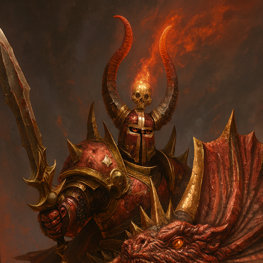 Hrothgar Skuldson is the Crimson Juggernaut, Urmbrik’s warlord-champion, riding at the head of berserk hosts and flesh-forged armies. His presence embodies the God Hand’s creed: strength, rage, and the eternal cycle of slaughter.