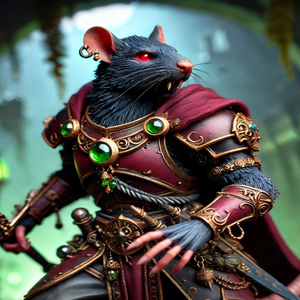 At fifteen, Tallow was given his first command—a small unit of warriors tasked with defending one of Rat Pitt’s key entrances against invading forces of rival clans. Most saw it as a death sentence, a test to see if Skrul’s prodigy would crumble under true pressure. Instead, Tallow led his warriors with unwavering resolve, holding the gate against overwhelming odds. His tactical brilliance and unmatched combat prowess earned him the title of Captain of the Black Guard, Rat Pitt’s elite warriors. However, his refusal to partake in unnecessary cruelty and his insistence on fair treatment of those under his command soon made him a target of rival council members. Many saw him as a threat—an unpredictable force that could inspire rebellion among the downtrodden Skaven who despised the corruption of the ruling class. Assassination attempts became common, but Tallow survived them all, his skill and instinct keeping him alive.Physical Appearance & Combat Style