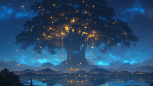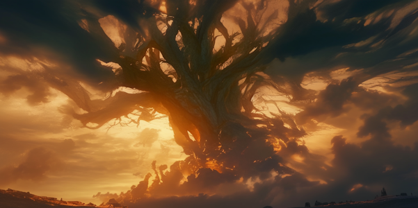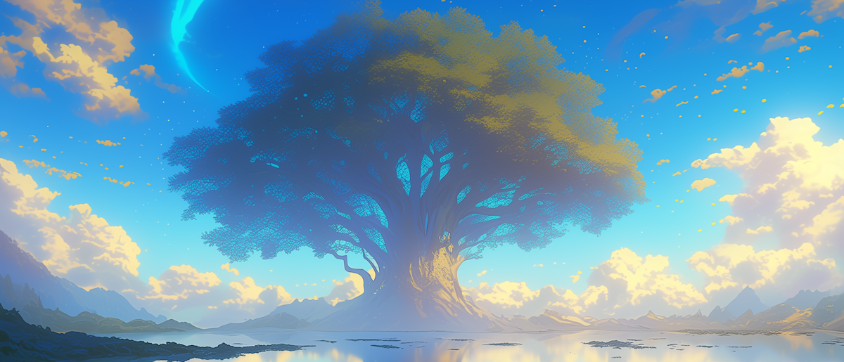 When the Light Ones descended from the Heavens and began to shape the earth in their own design, they knew their will was not of the world. They would not wrestle mother nature into obedience, but bless it, working in harmony with what already breathed and grew. So they planted a seed greater than any other in the heart of Tenebrion, on Eiraval. Its roots braided into the deep and its trunk climbed the sky. Long years passed, slowly but surely, the sapling rose to a height that dwarfed all forests.