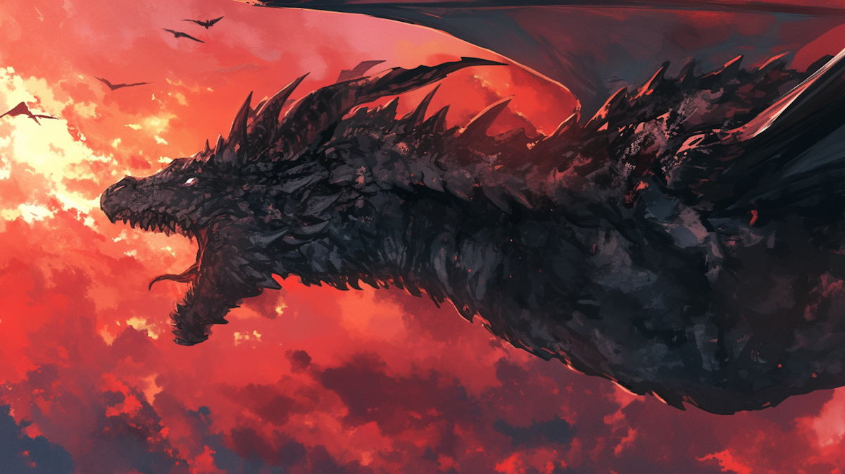 Khalazgorix the Black, his name meaning “the Mountain that Burns”, styled Wrathion by the Elves after the firing of Arûvhalen in the War of Wrath, was a dragon of impossible immensity. Legend makes him mountain-sized, with scales ashen-black, eyes like twin embers beneath a jagged crown of black horns. His breath was a furnace, his maw a rack of needle-black teeth, his claws like obsidian sickles, one wingbeat turned the air to thunder. His roar shattered glass and shook stone. To behold him was to look upon doom itself. Immense and ancient, he seldom took wing without good cause, and that cause was wrath.
