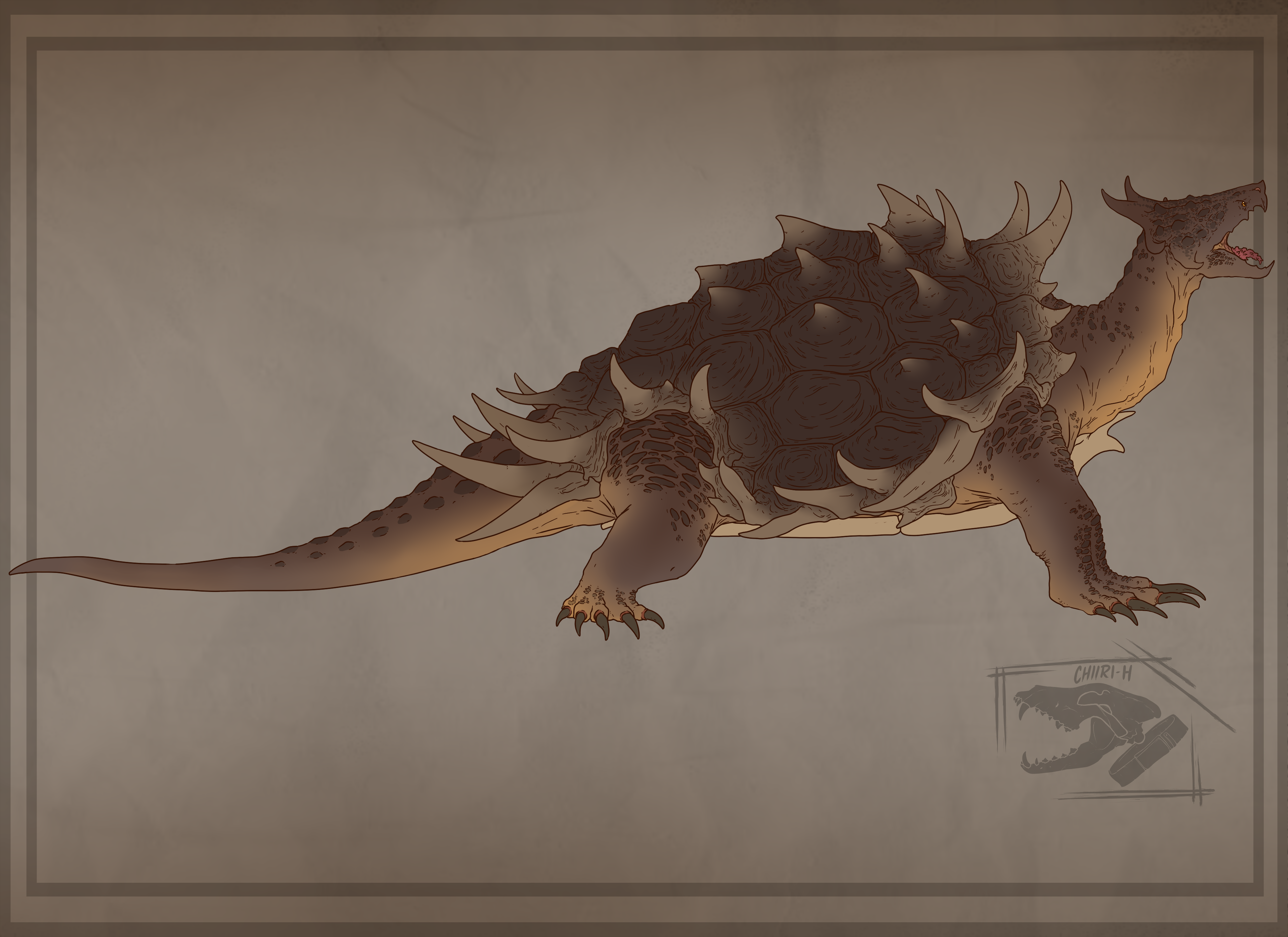 Diamondshell terrapins are a truly massive species of turtle, growing up to 10 feet long from beak to tail. Their shells are incredibly robust and covered in large spines, especially around their front, spine, and rim. These large robust spines drastically increase the animal's perceived size, and begin growing when they are quite young as a way of deterring predation, primarily by making the turtles too large for most predators to fit in their mouths.