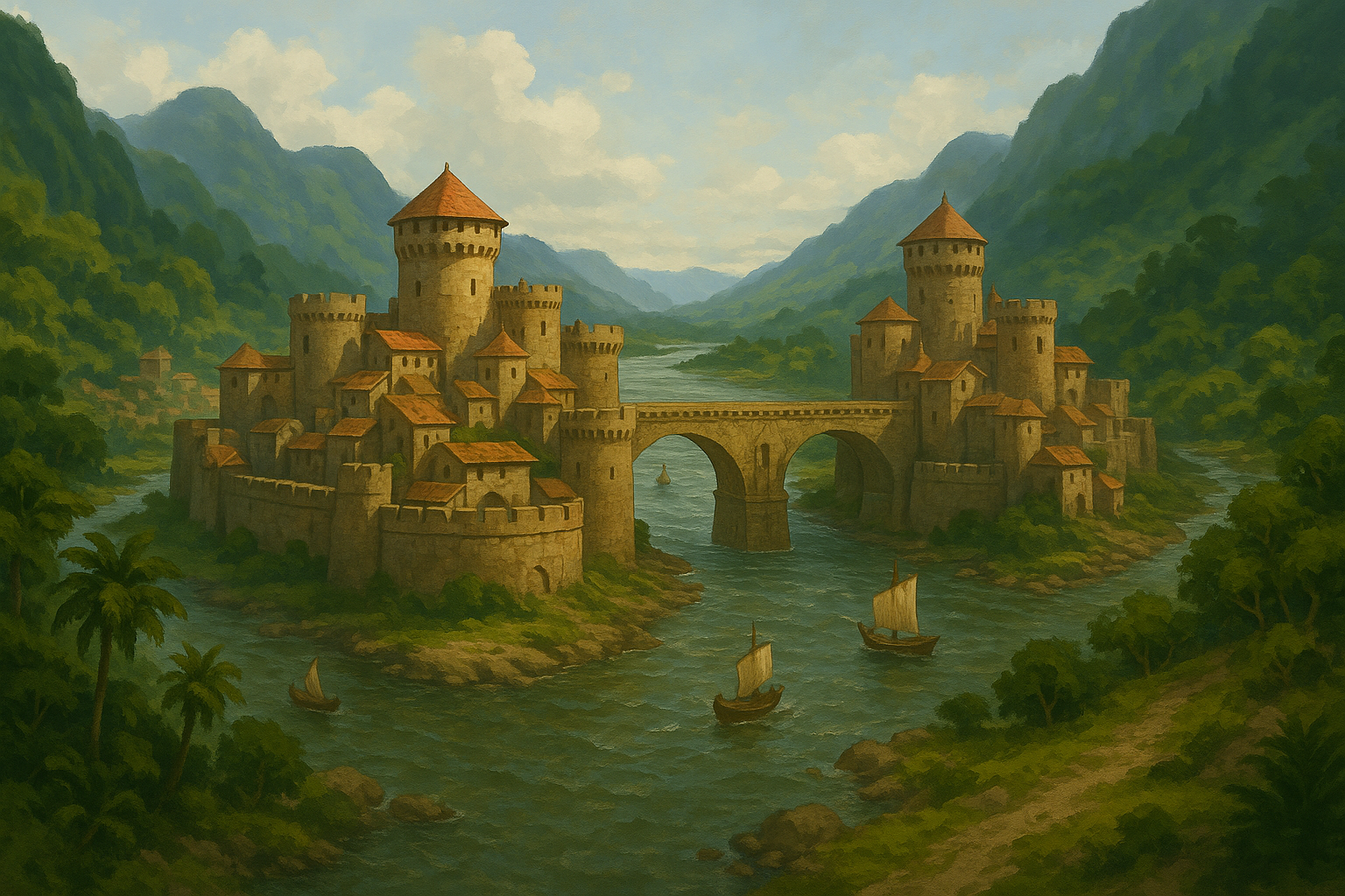Resilient yet fluid, Kharukt thrives through environmental mastery rather than empire-building. Its river legions, canopy scouts, and amphibious fleets make foreign invasion nearly impossible, while its industries—shipcraft, herbal medicine, jungle textiles, and river-agriculture—anchor regional trade. Diplomatically, Kharukt maintains selective openness with neighbors like Cales, Pepji, and Masheš, using its strategic waterways as leverage. Internally, a shifting dance of clans, priesthoods, and sects influences politics, creating a society where spiritual philosophy and pragmatic survival intertwine seamlessly. Kharukt endures as a kingdom defined not by conquest but by harmony—between river, jungle, tide, and the diverse peoples who depend on them.