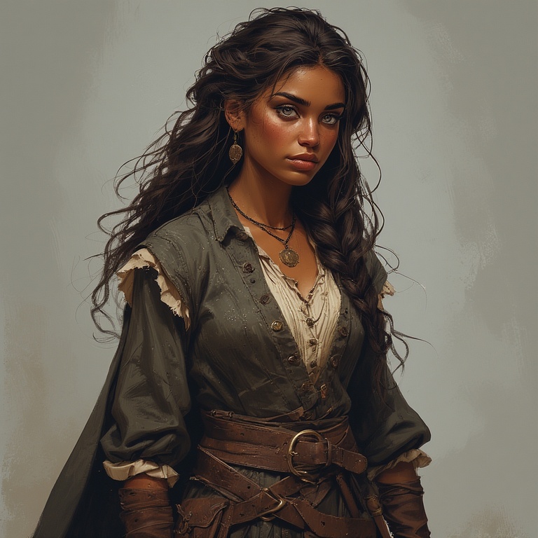 Mira Thornwick is a short, thin, and quick woman. She has long, brown hair, hard grey eyes, and a dark complexion. Her wit is as quick as her hands and very few escape her company unscathed.