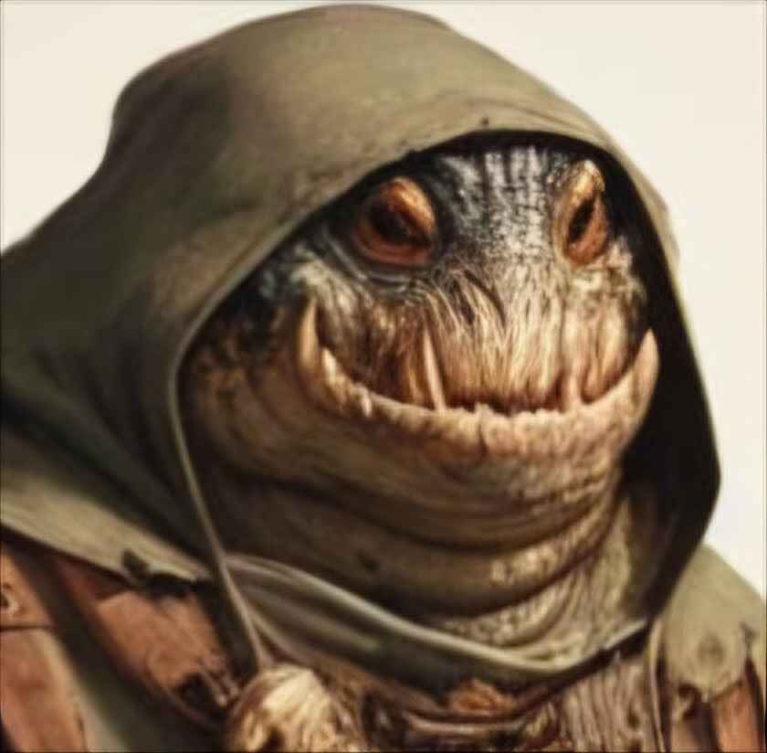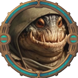 These are the images that come to mind when greeted by the visage of Gupogis Turgido. A stunted loaf of a creature beleaguered by a great belly and wreathed in the scales of mossy green, this is no fine specimen of any species. The snake's smile and shark's eyes that peek out from layer upon layer of cloth speak of the primordial pits of Primus from which this creature may well have sprung, but where it has since been seems far less mysterious. Anyone who has ever spent time in the great trade cities of Avalon or the expansive night markets of Orpheus would recognise a merchant's heartless grin and calculating stare anywhere, and all such hallmarks are plastered purposefully on Gupogis.