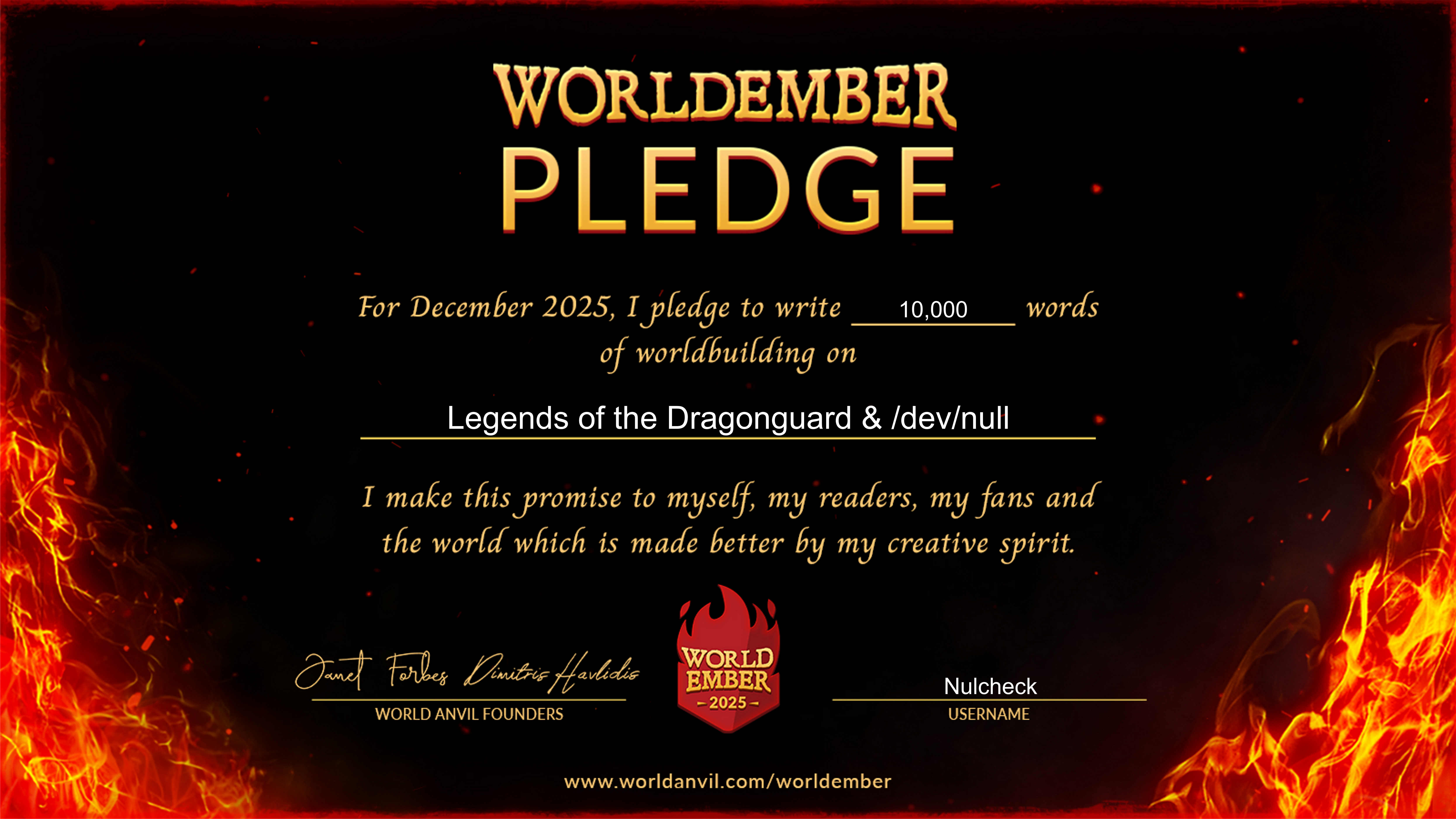 While I feel like I've got enough ideas to go for the 25k, I'll still pledge the original 10k. Maybe an accountability-buddy would help, idk (can i get Janet or Dimi as one? haha /s). Like last year, I think my family will be coming home sometime around the 25th of December, so I'll have most of the month to myself to work on worldbuilding. Or at least that's as far as I know right now. Now that I have another world, WorldEmber will encompass both of them. :)