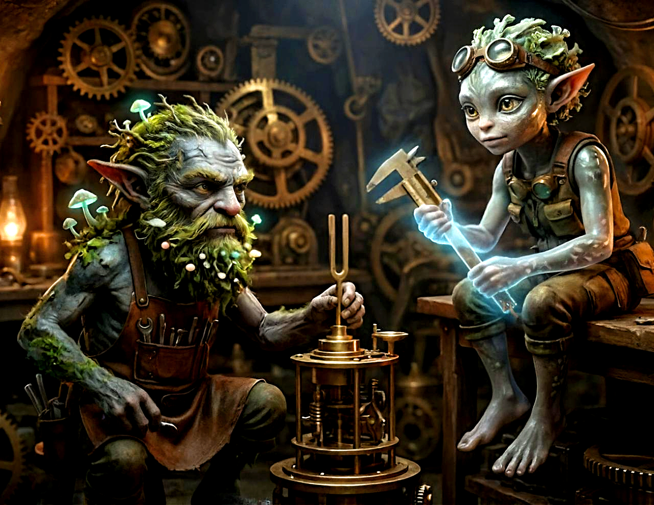 The Fliis are a rarer and truly unique union of the klash-kal and the orfian. Imagine a being the size of a human child, but with the rugged, stone-like hide and mossy hair of the klash-kal, combined with the agility and shadow-affinity of the orfian. These tough, ingenious people are masters of invention and vibrational technology ("Artpunk/Musicpunk"), conquering the skies with a cleverness that rivals any scholar.