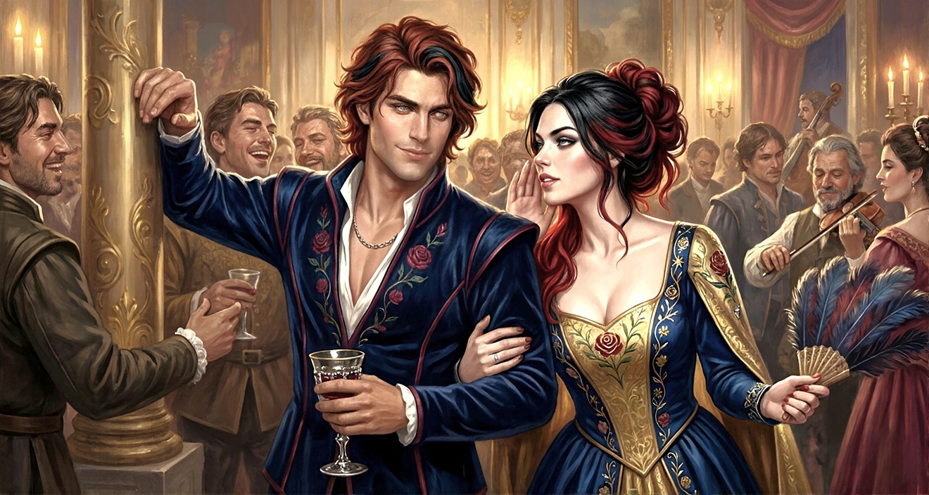 The Gilded Cage. Concept art for the high society of Reimes, depicting the Torryaenen twins Ealonde and Ariel, c. 880 AV, contrasting the brutalism of the Siege. by Val Saraven