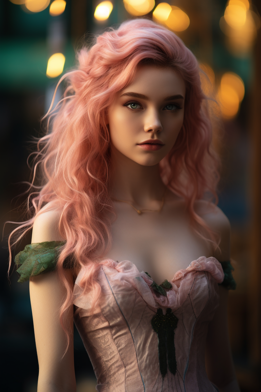 Sie trägt zahlreiche verspielte Accessoires wie Haarclips, Armbänder und bunte Ringe, die sie fast wie ein Mädchen aus einem Kindertraum erscheinen lassen – doch hinter dieser Fassade lauert etwas Dunkles, etwas Unheimliches.