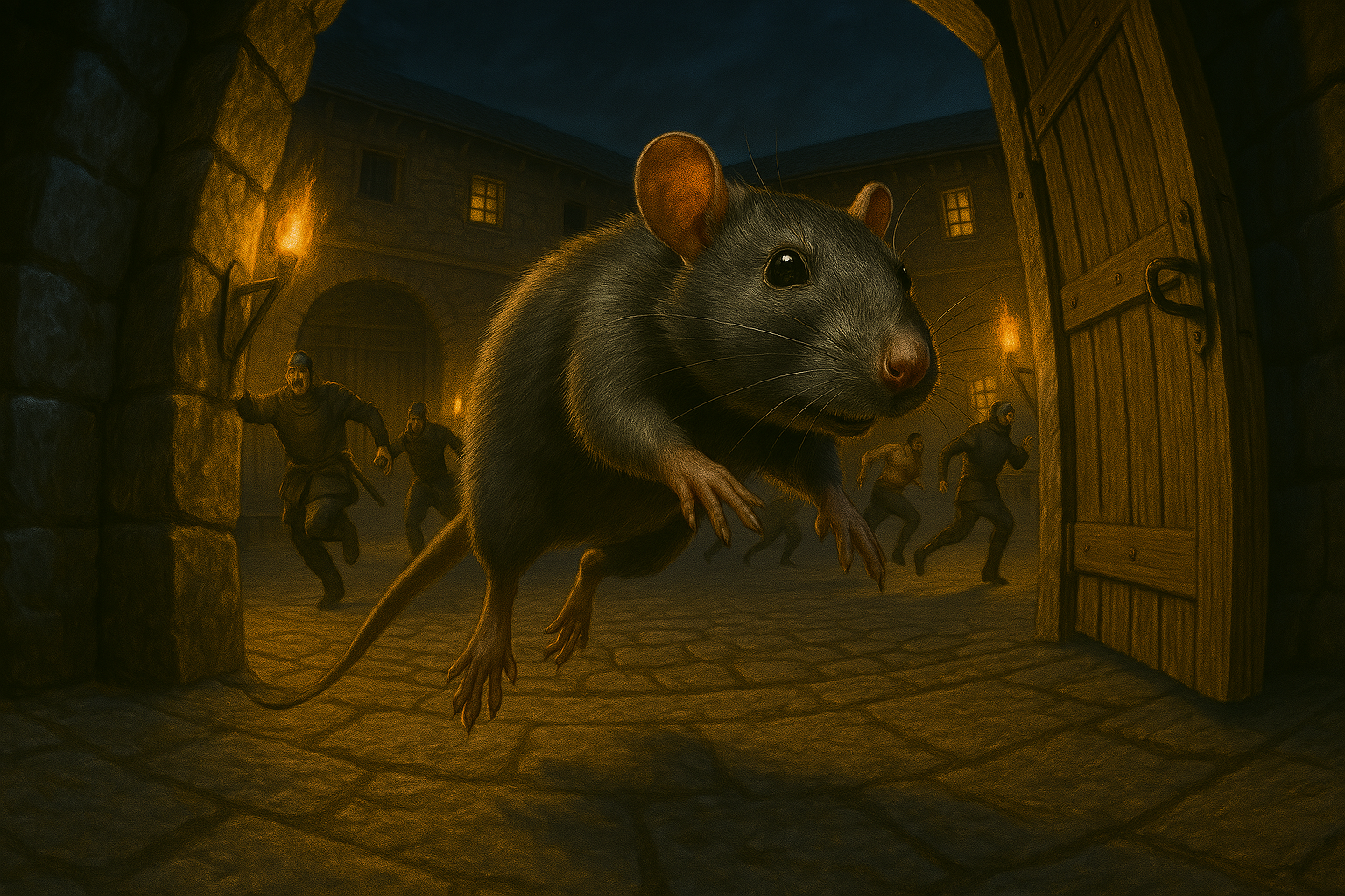Następnego dnia drużyna rozpoczęła przygotowania do nocnej dywersji - odgruzowano wnętrze zawalonej wieży i naniesiono tam drewna, które miało zostać potem podpalone. Gdy nastała noc towarzysze rozdzielili się zgodnie z przypisanymi wcześniej rolami - Abdul miał zostać w wieży i rozpalić ogień, Kuzo miał stać się niewidzialny i wbiec do twierdzy mając przy sobie pojemną torbę, w której siedzieć miał Asvard jako wsparcie w razie kłopotów. Płomienie zajmujące strażnicę wkrótce zostały zauważone przez patrol strażników, który podniósł alarm - sierżant Darwyn zgodnie z planem wysłał tam silny kontyngent strażników stacjonujących w koszarach. Korzystając z chaosu Kuzo wkradł się do opuszczonego przez strażników lochu - Darwyn zadbał nawet, by nadejście zmienników dotychczasowej warty zostało opóźnione - następnie wrócił do swojej ludzkiej formy i wypuścił Asvarda, który z rykiem złapał za kraty celi Morathila i bez trudu wyrwał je ze ściany. Następnie Kuzo ponownie rozwinął pojemną torbę, do której wskoczyli wtuleni w siebie kapłan i barbarzyńca. Chwilę później mały, szary szczur mknął już przez dziedziniec koszar, a gdy dostrzegł sierżanta Darwyna wydającego rozkazy strażnikom ruszającym do walki z ogniem wrócił do formy człowieka, kazał żołnierzowi wskakiwać do torby i korzystając z magii niewidzialności i lotu opuścił Warownię, dzięki czemu drużyna w komplecie znalazła się poza twierdzą.