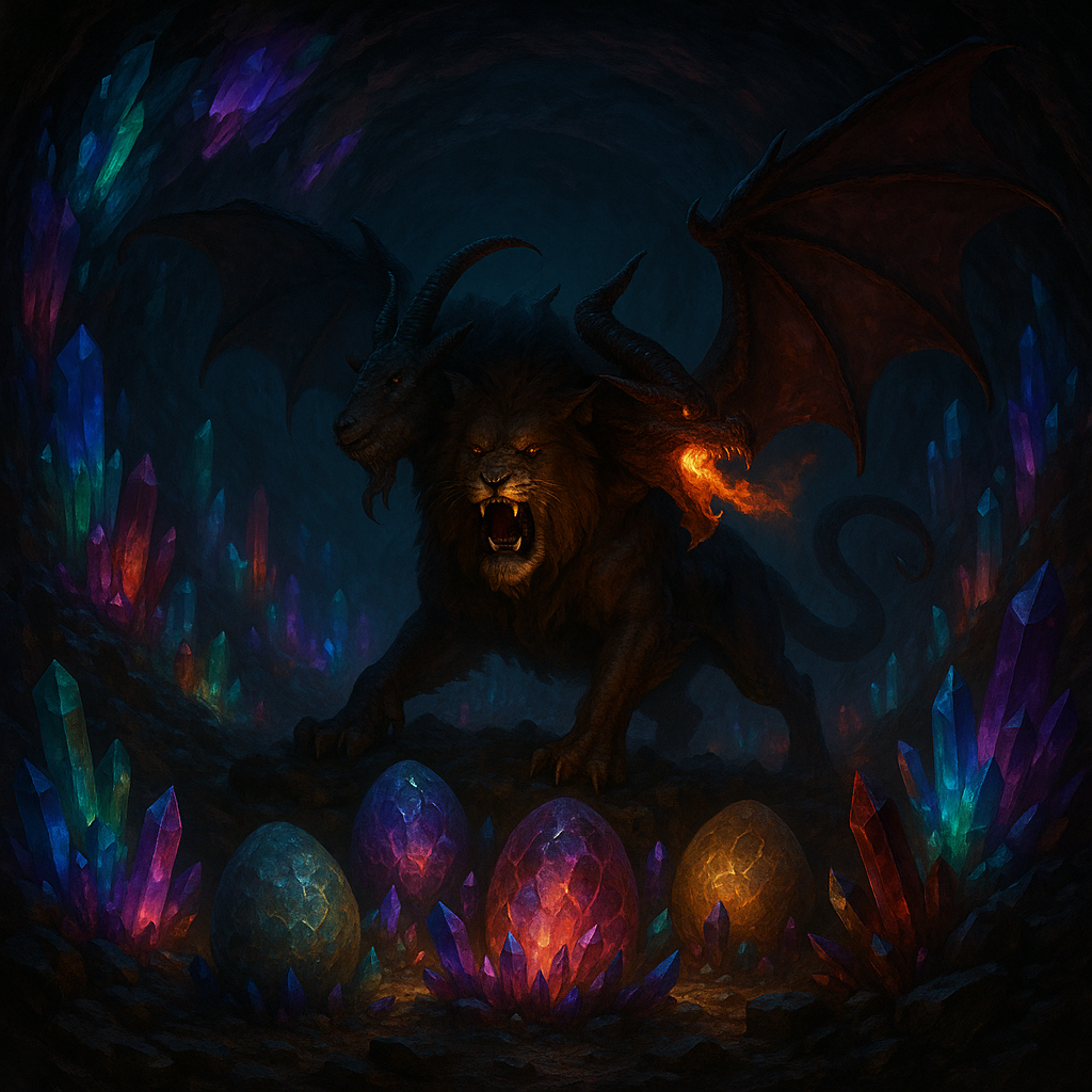Odnalezienie kopalni nie stanowiło problemu. Wejście do środka przywitało ich tabliczką z napisem "Przejścia nie ma", którą drużyna zignorowała i wzięła się za odgruzowanie lekko zawalonego korytarza. Po wykopaniu szczeliny przedarli się wgłąb jaskini by natrafić na dużą, sferyczną grotę wypełnioną wielokolorowymi kryształami, pośród których wpatrzyć można było duże, skrystalizowane jaja chimer - trzy z nich zaatakowały towarzyszy ku swojej rychłej zgubie.