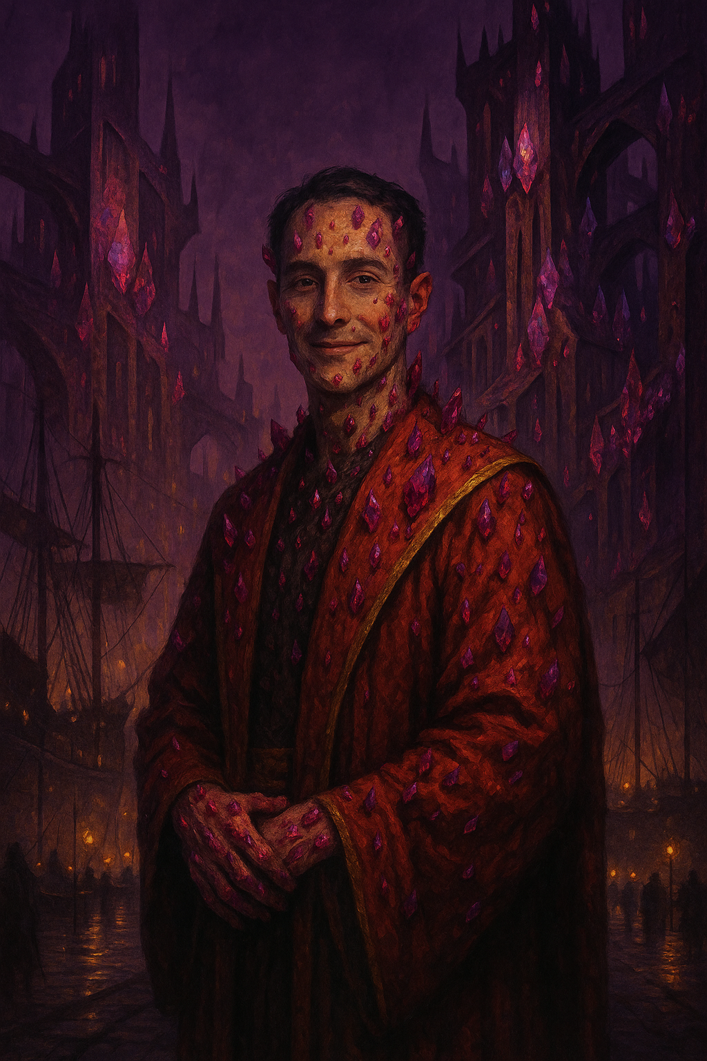 Dalsza część podróży przebiegła bez przygód. Zbliżając się do Zosimos późnym wieczorem dwunastego dnia rejsu towarzysze zauważyli na językach dziwny, metaliczny posmak mniej więcej w momencie, w którym minęli ostatni półwysep Akath i ujrzeli mieniące się fioletowo-czerwonym blaskiem wysokie zabudowania tej dziwnej krainy. Podpływając bliżej ujrzeli szczegóły Bet, głównego portu Zosimos, który przywodził na myśl skojarzenia z owadzim ulem - tak gęsta była tu zabudowa i tak wiele ciężko pracujących osób widać było w porcie. Asvard wypatrzył wolny kawałek nabrzeża i skierował tam statek, a gdy zbliżył się by zacumować towarzysze wypatrzyli bogato ubranego człowieka z ubraniem i skórą nabitymi kryształami, który z uśmiechem na twarzy przywitał ich słowami: