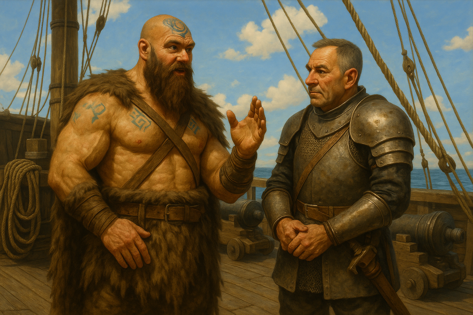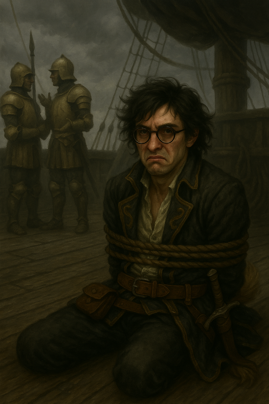 Pierwsza noc na pokładzie Ostatniej Pieśni przebiegła nerwowo - kapitan Asvard starał się jak najprędzej oddalić od brzegów Sorridii w celu uniknięcia pościgu goniącego za nimi jeszcze z samej Warowni Valanora. Rankiem, gdy okazało się że drużyna jest w miarę bezpieczna na pełnym morzu, przeprowadzili inwentaryzację wyposażenia statku. Okazało się, że przede wszystkim brakuje im zapasów jedzenia i wody - o ile to pierwsze byli w stanie sobie zapewnić łowiąc ryby (w czym dość dobrze sprawdzał się nowy członek drużyny Gerwazy) o tyle woda pitna stanowiła problem, który towarzysze postanowili rozwiązać poprzez ryzykowne cumowanie w Perłowym Siole, jednym z mniejszych portów Sorridii. W międzyczasie sierżant Darwyn poprosił Asvarda o chwilę rozmowy by dowiedzieć się jakie drużyna ma plany na najbliższą przyszłość.