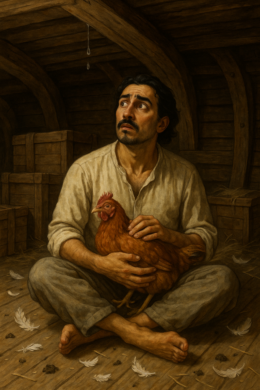 Kolejne dni podróży przebiegły dość nerwowo - sytuacja w kraju ewidentnie się zmieniła, czego dowodem były liczne statki patrolujące wybrzeże królestwa. Bohaterowie skierowali Ostatnią Pieśń na głęboki ocean próbując dostać się w pobliże upadłej Pieczęci. Z dala od brzegu sytuacja pogodowa zmieniła się bardzo szybko - wkrótce spokojny rejs zamienił się w walkę z żywiołem podczas sztormu pośród piorunów i ulewy. W pewnym momencie błyskawice trafiły w morze tuż obok statku towarzyszy, a w miejscu wyzwolenia energii manifestowały się żywiołaki burzy, które z wściekłością zaczęły atakować statek i załogę przywołując kolejne błyskawice. Większość drużyny wybiegła natychmiast na pokład by walczyć z żywiołem - Farciarz przy użyciu kuszy, Kuzo i Morathil rzucając czary, Radymir wspomagając towarzyszy błogosławieństwami a Asvard wyskoczył za burtę z Krwawym Zewem w rękach i doleciał do żywiołaków korzystając z czaru lotu rzuconego mu przez Kuzo. Abdul w tym czasie postanowił szczególnie wykazać się męstwem i zszedł pod pokład by doglądać stanu kurczaków.