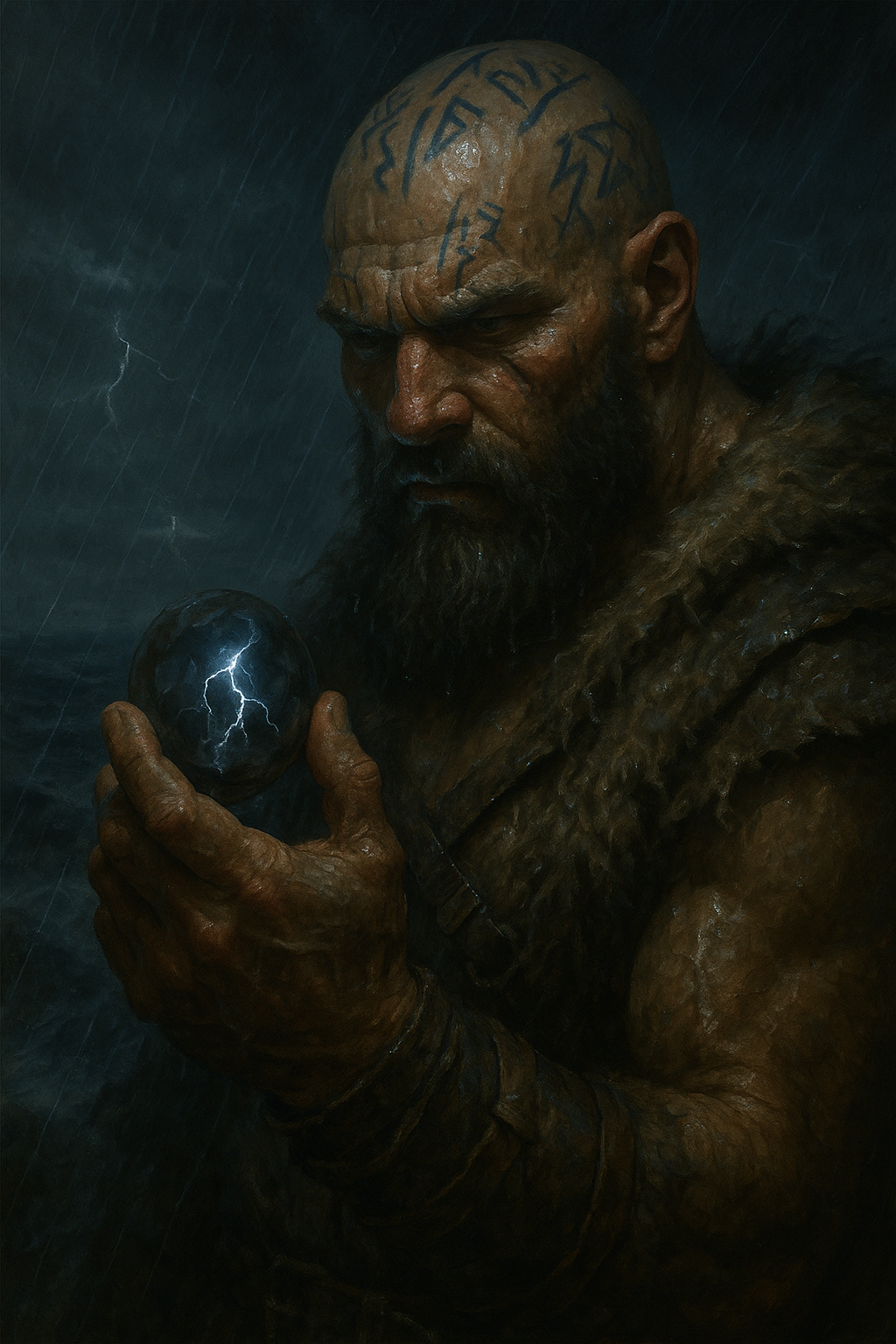Po dość krótkiej walce towarzyszom udało się odegnać żywiołaki co jednocześnie uspokoiło pogodę, a także zagasić płomień którym zajęły się żagle statku. Ostatniego przeciwnika Asvard rozpłatał toporem lewitując nad powierzchnią morza. Śmierć żywiołaka skrystalizowała jego esencję w kamieniu zwanym sercem burz - barbarzyńcy udało się złapać go zanim spadł w otchłań oceanu.
