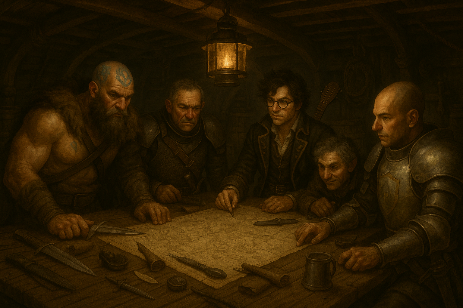 Atmosferę triumfu po ich powrocie wkrótce zastąpiła powaga związana z dyskusją na temat dalszych kroków. Sierżant Darwyn przeczytał raport stanowiący podstawę oskarżenia hrabiego o zlecenie zabójstwa króla i podjął się zadania dostarczenia go na dwór królewski, nad którym wraz z popierającym go wojskiem mieli przejąć kontrolę po zniknięciu Thornwooda. Asvard zrobił jeszcze szybki rekonesans nabrzeża w poszukiwaniu ciała hrabiego, jednak nie udało mu się go znaleźć. Resztę nocy bohaterowie spędzili nad dyskusją o przyszłości. Darwyn zapewnił ich, że jeżeli pokojowy pucz się uda to zostaną ułaskawieni w Sorridii i oni i siedzący w więzieniu Durgan. Poradził im jednak, by na jakiś czas oddalili się z miasta w razie gdyby jego przedsięwzięcie się nie powiodło - to stanowiło początek dyskusji nad dalszymi krokami drużyny. Czy skierują się na północ w poszukiwaniu śladów działalności Dzieci Caldariusa? Czy należy najpierw odwiedzić ostatnią siedzibę Malekimów, którą znaleźli na mapie? Czy będzie im jeszcze kiedyś dane spróbować Brodatego Strong?