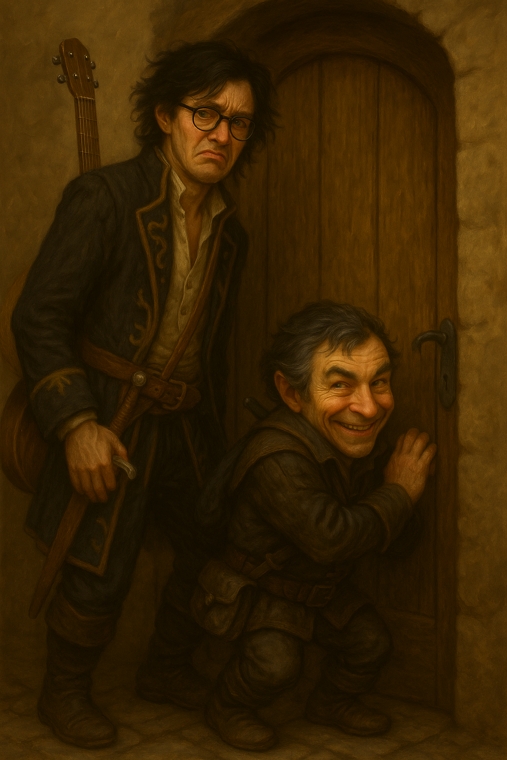 Bard i łotrzyk naprędce szeptem omówili plan działania: Farciarz otworzył po cichu drzwi, Kuzo przywołał chatkę Leomunda by powstrzymać wydostanie się okrzyków przerażenia i agonii lichwiarza oraz prostytutki, która się nim zajmowała - oboje zginęli bowiem od celnych strzałów z kuszy Farciarza. Następnie oba ciała zostały upchnięte do przenośnej dziury Kuzo i obaj opuścili tawernę przywłaszczając sobie przy okazji nieco bezpańskiego już złota. Gdy Garrick zobaczył, że jego problem został rozwiązany (zaledwie 15 minut po wcześniejszej rozmowie z drużyną) zaprosił ich do swojej cieciówki i opowiedział im w szczegółach o stanie osobym patroli strażniczych i mastifach, a także o magii zabezpieczającej wejście do zamku, która wymaga wypowiedzenia hasła zmieniającego się co kilka dni. Ponadto opowiedział o młodych magach kręcących się przy posągach gargulców, które ożywają i patrolują niebo nad zamkiem.