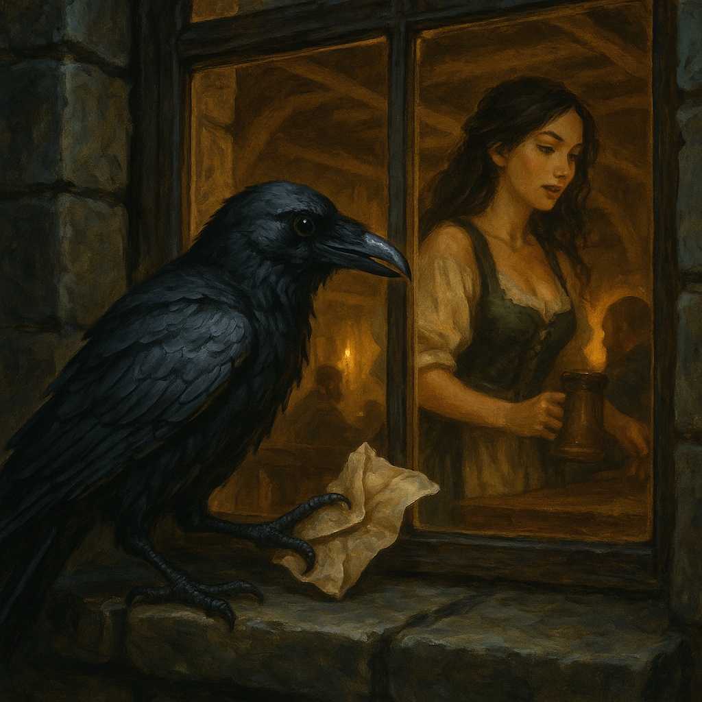Po kilkunastu minutach szaleńczego biegu Abdulowi udało się odnaleźć obozowisko Gerwazego i Kaelena. Wycieńczeni i ranni towarzysze rozłożyli się na trawie wokół ognia i zasnęli, zaś rankiem następnego dnia męczony wyrzutami sumienia Kuzo wyciągnął kartkę i napisał krótki liścik po czym rzucił czar i ryzykując wszystko w formie ptaka poleciał z powrotem do miasta kierując się w stronę Pod Białym Pucharem. Gdy odnalazł karczmę przysiadł na parapecie jednego z okien przez które dojrzał młodą karczmarkę i zaczął stukać dziobem w szybę tak długo, aż ta go usłyszała, podeszła do okna i je otworzyła.