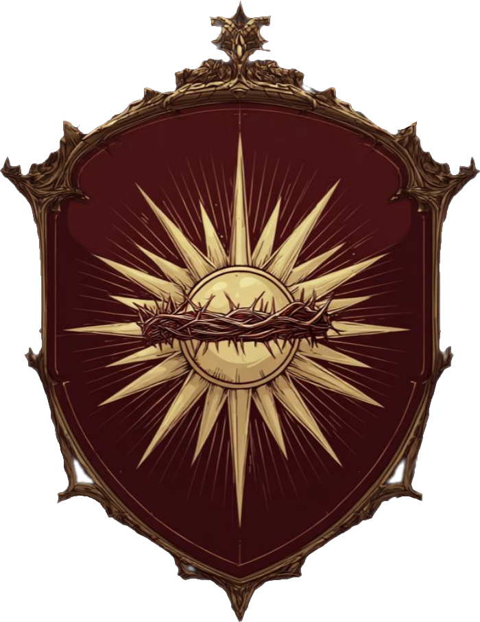 The Radiant Sun with Crown of Thorns: They use the traditional symbol of Arva (a radiant sun), but add a crown of thorns or blades around the rays, symbolizing the pain their "truth" must inflict on the world.Colors: They dress in black and crimson red robes (the color of blood and sunset/sacrifice) trimmed in shining gold (the light of Arva). White and gold are used only in moments of extreme display of power or during public rituals.